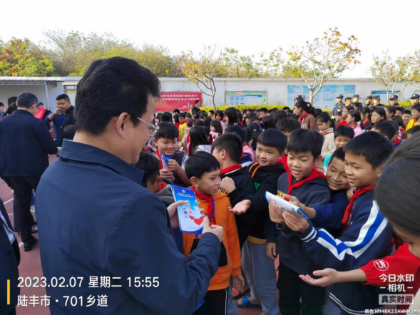為深入推進全市禁毒示范創(chuàng)建工作,抓住新學期開學時機,認真做好春季“開學第一課”禁毒預防教育,進一步擴大禁毒宣傳教育覆蓋面和受眾面,助力我市禁毒示范創(chuàng)建工作規(guī)范、有序、有效開展,2月7日,陸豐市應急管理局局長吳科組織甲西鎮(zhèn)歐華村委、駐村工作組前往甲西鎮(zhèn)歐華小學開展了以“禁毒宣傳進校園 防毒拒毒我先行”為主題的禁毒宣傳“進學校”活動。