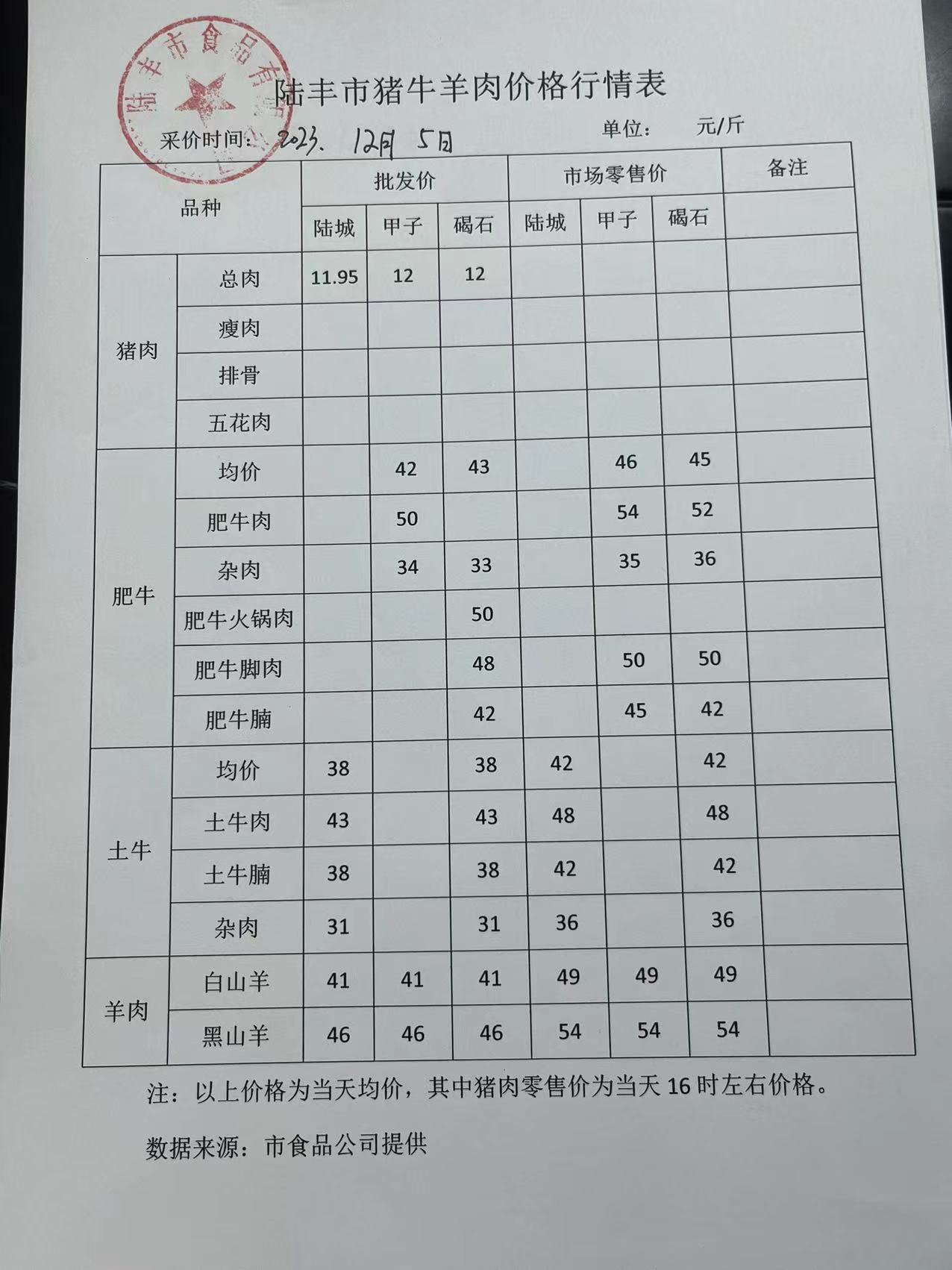 陸豐市豬牛羊肉價(jià)格行情表