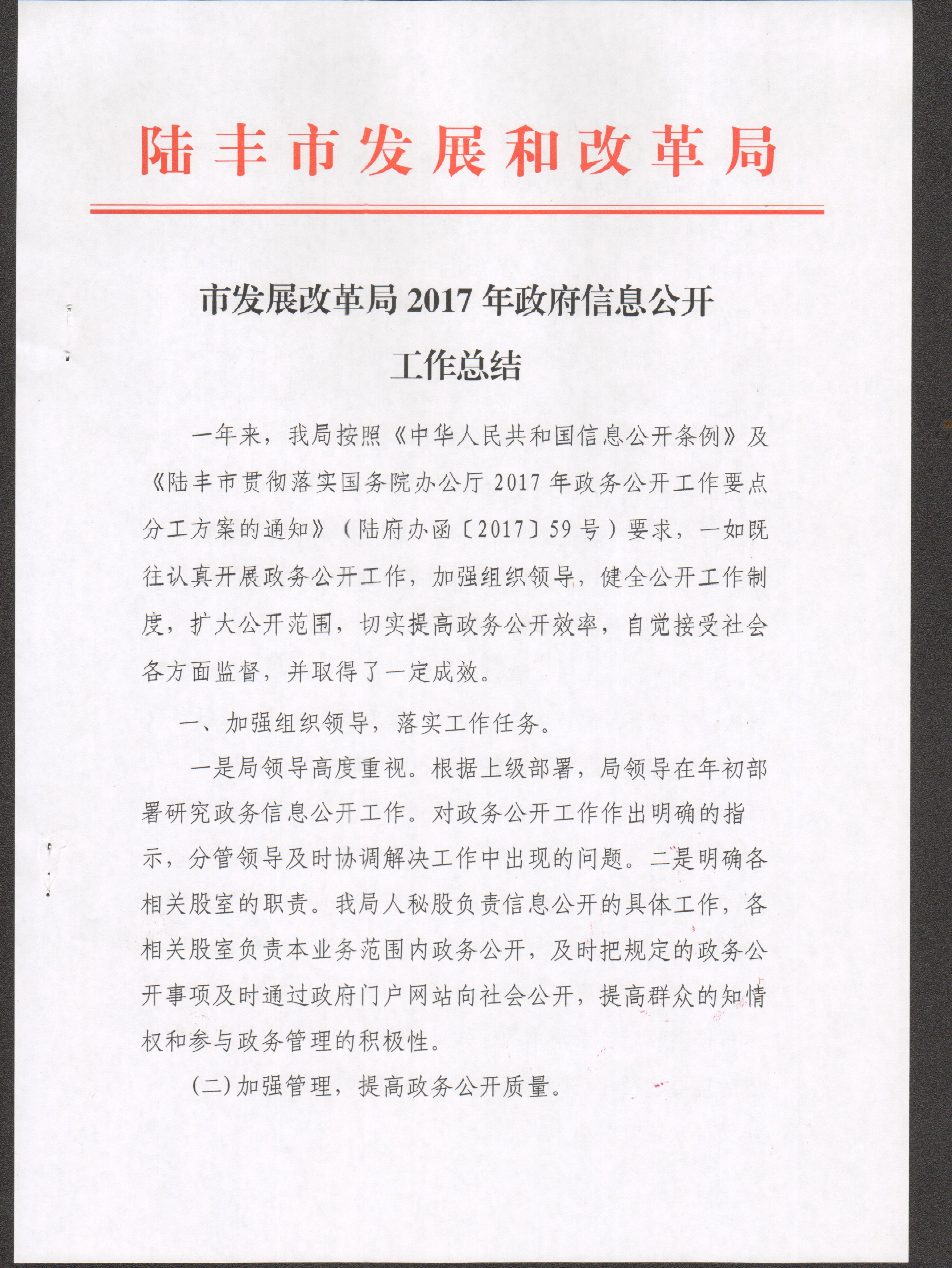 陸豐市發(fā)展和改革局2017年政府信息公開(kāi)工作總結(jié)