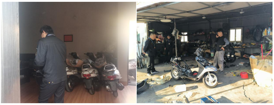 通過前期摸排,我局聯(lián)合碣北派出所,在陸豐市碣石鎮(zhèn)戴厝村委許厝村,搗毀非法組拼裝摩托車窩點(diǎn)1個,非法加工假冒商標(biāo)標(biāo)志摩托車配件窩點(diǎn)1個?,F(xiàn)場查獲半成品摩托車3輛,報(bào)廢摩托車2截,假冒品牌摩托車外殼一批,控制現(xiàn)場當(dāng)事人2人。