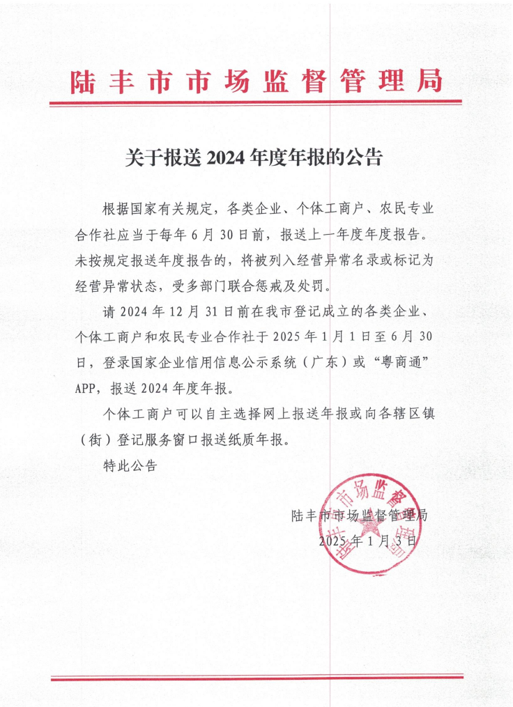 關(guān)于報(bào)送2024年度年報(bào)的公告