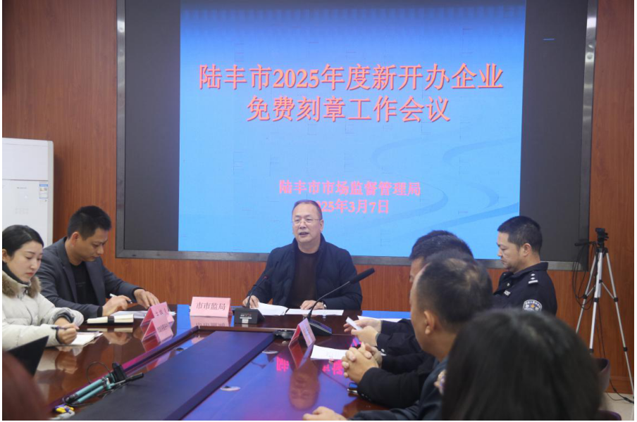 為進一步優(yōu)化我市營商環(huán)境,切實降低企業(yè)開辦成本,3月7日,市市場監(jiān)管局組織召開2025年度新開辦企業(yè)免費刻章工作會議。市市場監(jiān)管局副局長劉立群、市公安局治安管理大隊、市政務(wù)中心等部門負責同志及相關(guān)企業(yè)負責人參加會議。會議總結(jié)了2024年度免費刻章工作情況,并對2025年度新開辦企業(yè)免費刻制印章工作進行部署。