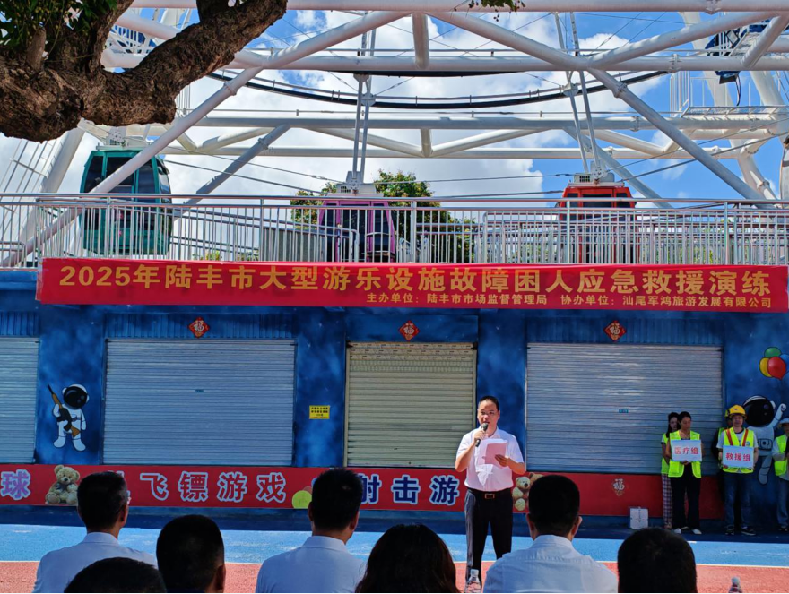 為貫徹落實(shí)市委市政府關(guān)于開(kāi)展安全生產(chǎn)月活動(dòng)的工作部署,圍繞“人人講安全 個(gè)個(gè)會(huì)應(yīng)急——查找身邊的隱患”這一主題,6月27日,陸豐市市場(chǎng)監(jiān)督管理局開(kāi)展2025年“安全生產(chǎn)月”大型游樂(lè)設(shè)施故障困人應(yīng)急救援演練暨“特種設(shè)備安全日”宣傳活動(dòng)。市政府辦、市安委辦、市文廣旅體局、市應(yīng)急管理局、市消防救援大隊(duì)、城東街道辦事處、東海街道辦事處相關(guān)領(lǐng)導(dǎo)同志,省特種設(shè)備檢測(cè)研究院汕尾檢測(cè)院專(zhuān)家,全市大型游樂(lè)設(shè)施使用單位共計(jì)50余人現(xiàn)場(chǎng)觀(guān)摩指導(dǎo)。