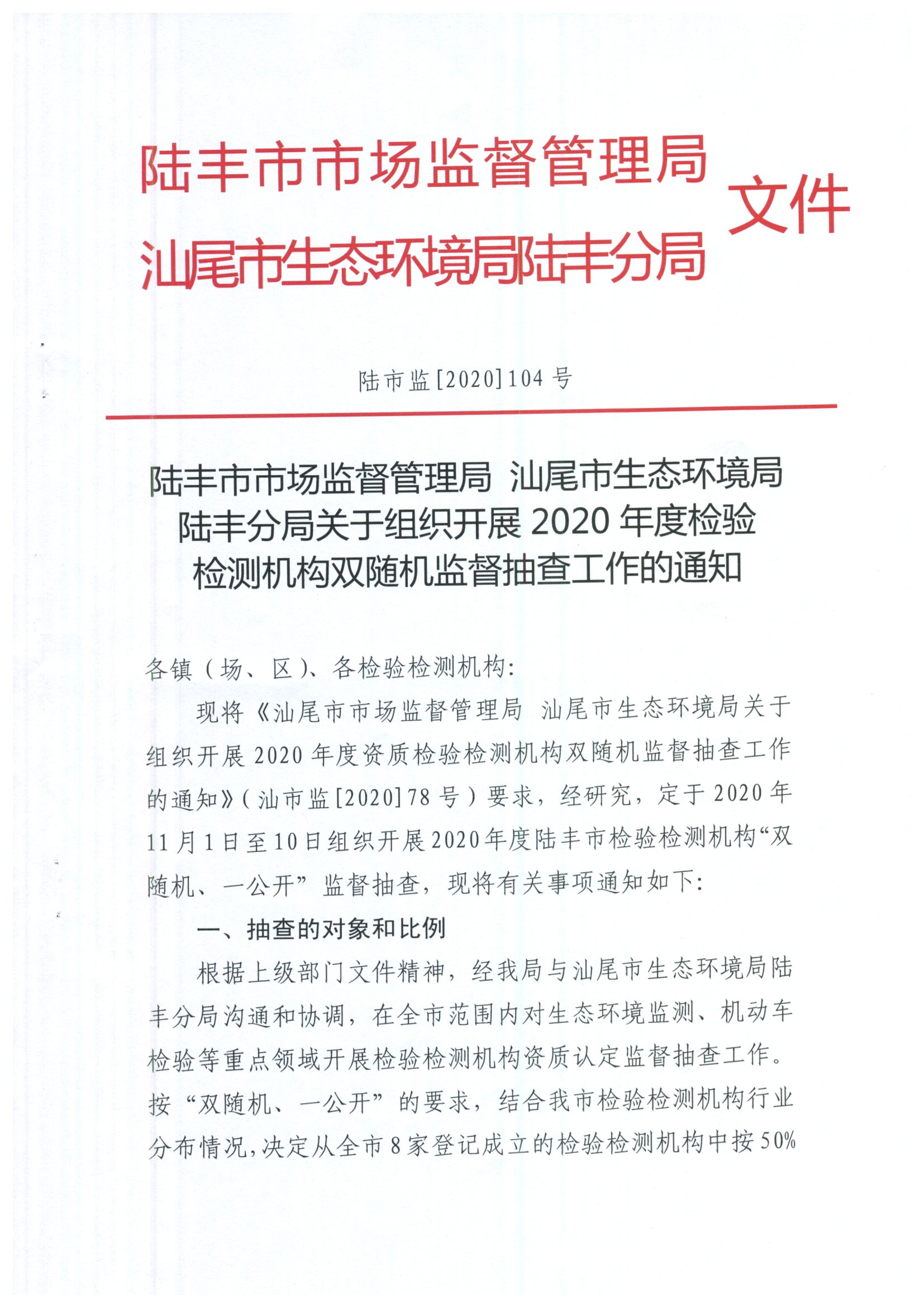 關于組織開展2020年度檢驗檢測機構雙隨機監(jiān)督抽查工作的通知