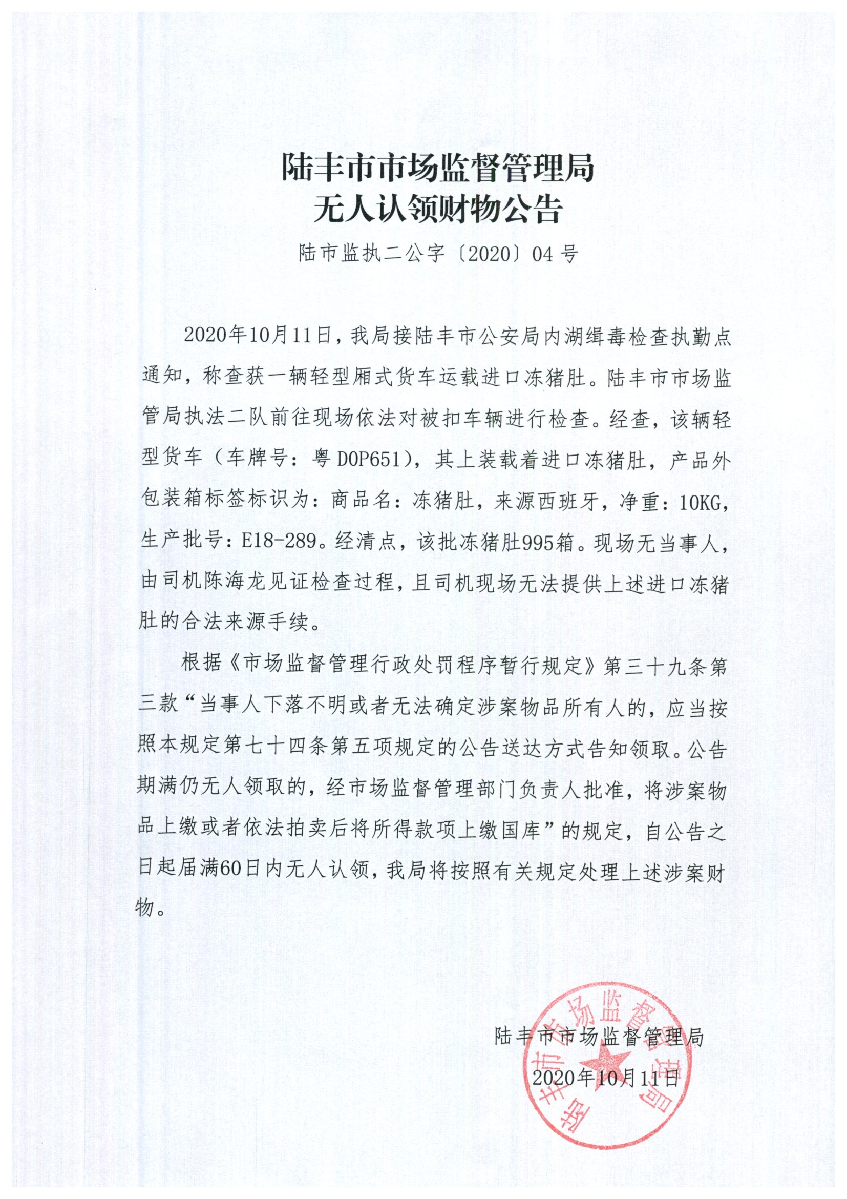 陸豐市市場監(jiān)督管理局無人認(rèn)領(lǐng)財(cái)物公告