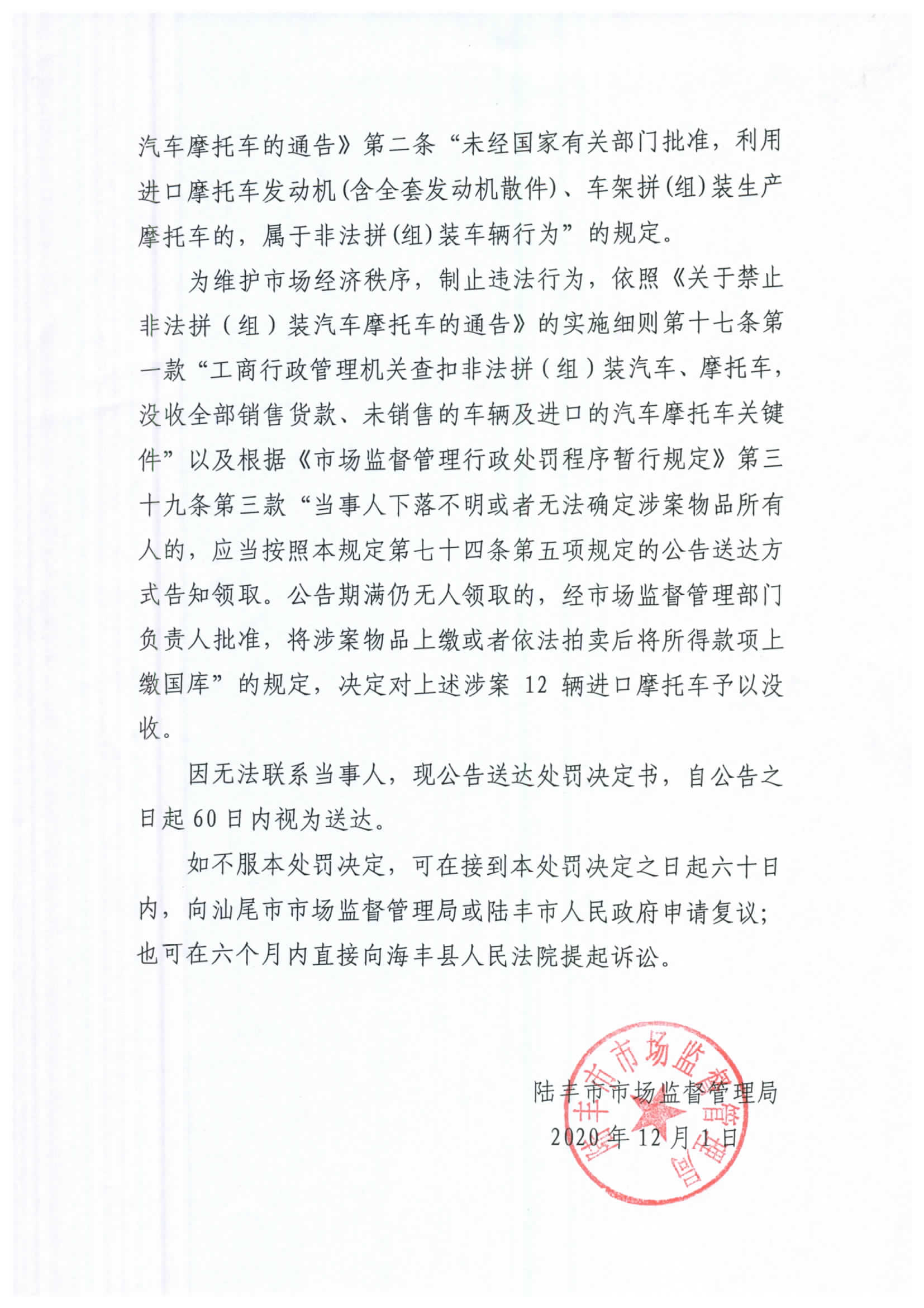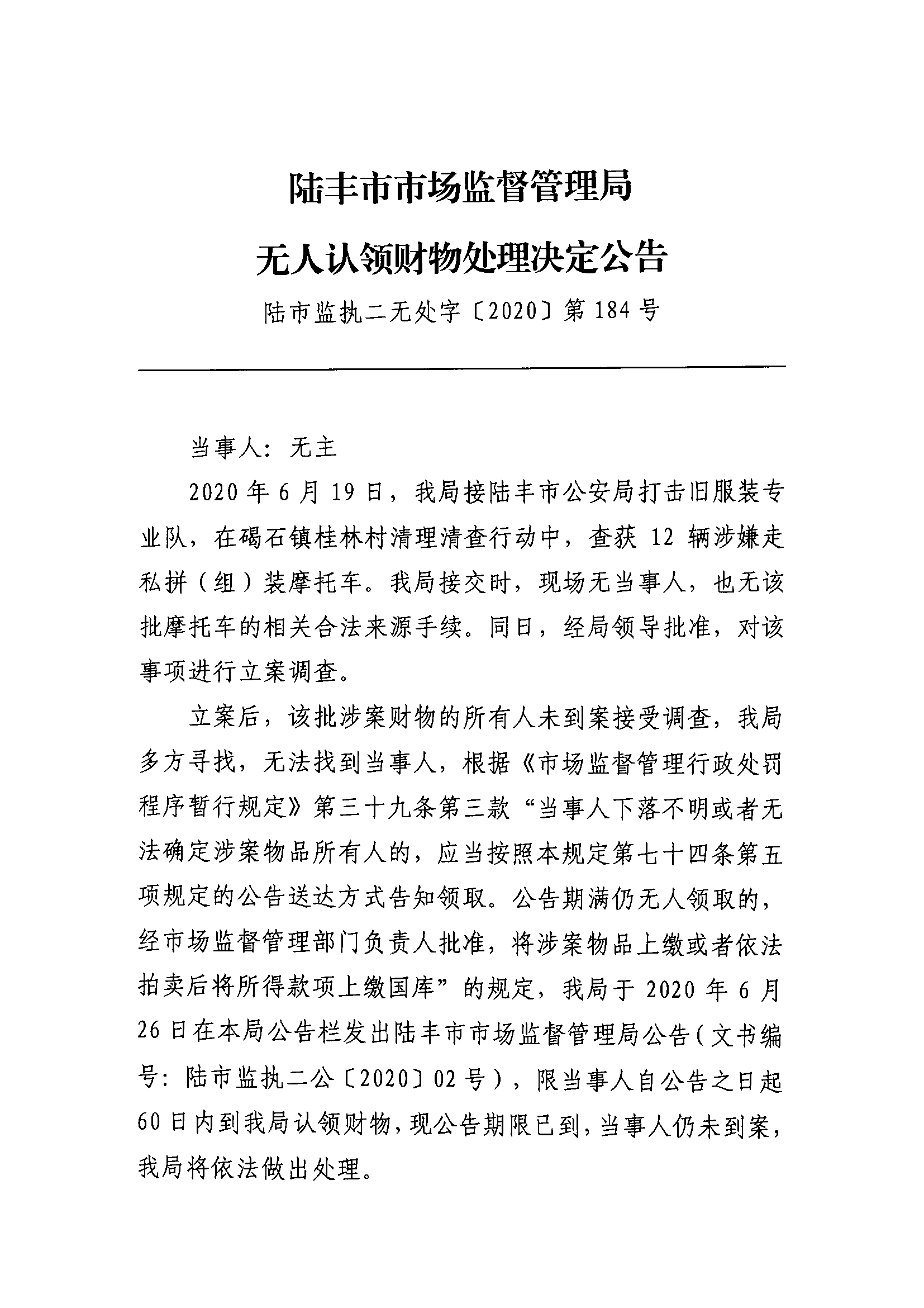 陸豐市市場監(jiān)督管理局無人認(rèn)領(lǐng)財物處理決定公告