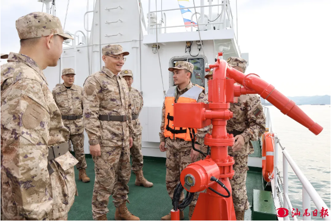 會(huì)后,市領(lǐng)導(dǎo)來到駐汕武警某部進(jìn)行“軍事日”活動(dòng),現(xiàn)場(chǎng)登上新入列武警某部艦艇,詳細(xì)了解部隊(duì)歷史沿革和發(fā)展建設(shè)情況,認(rèn)真觀摩裝備展示,感受部隊(duì)的厚重底蘊(yùn)、光榮傳統(tǒng)和強(qiáng)軍新貌。