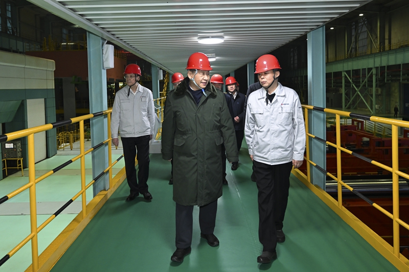 1月22日至24日,中共中央總書記、國家主席、中央軍委主席習(xí)近平冒著嚴(yán)寒來到遼寧,看望慰問基層干部群眾。這是23日下午,習(xí)近平在本溪市考察本鋼板材冷軋總廠第三冷軋廠車間。新華社記者 謝環(huán)馳 攝