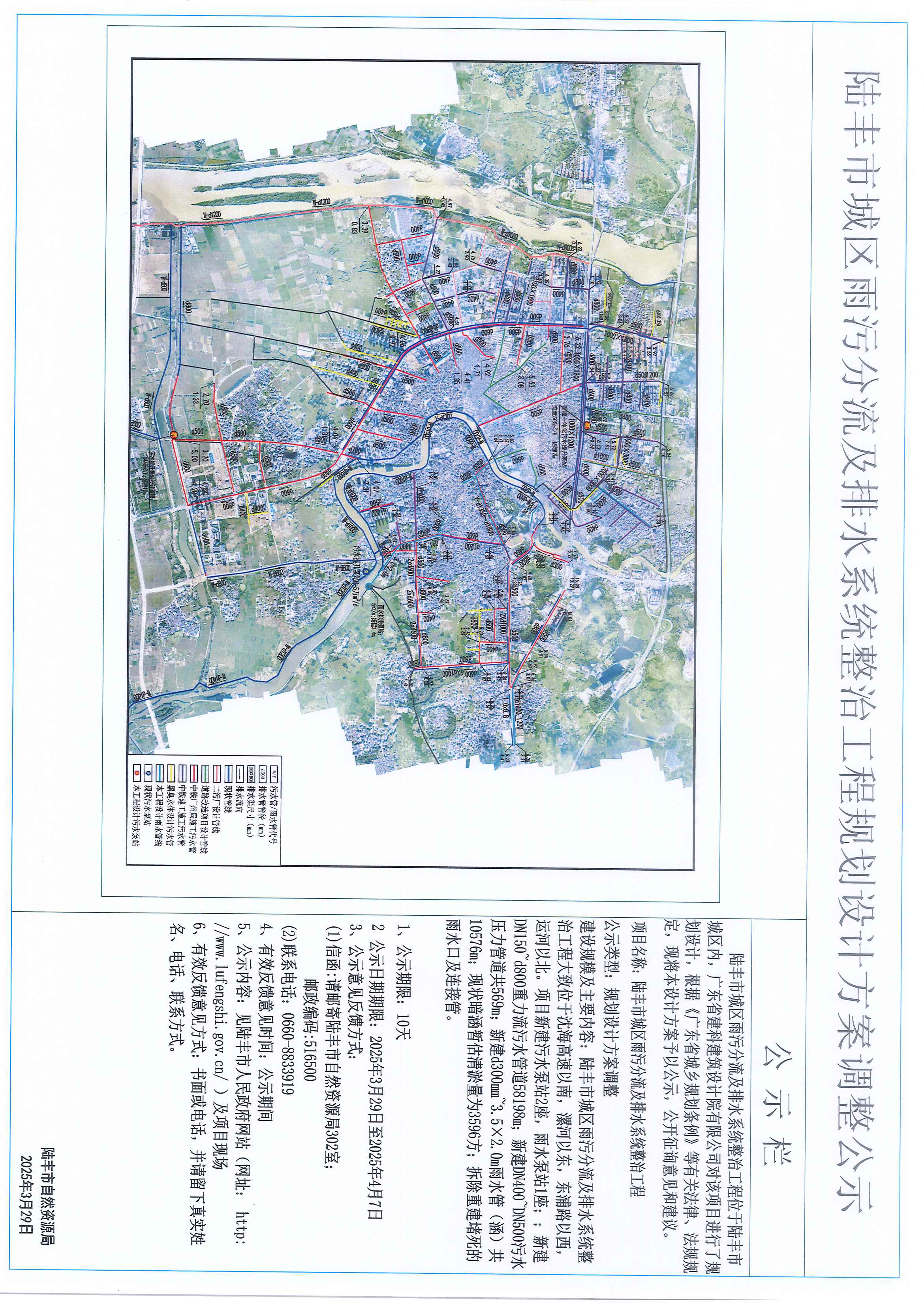 陸豐市城區(qū)雨污分流及排水系統(tǒng)整治工程規(guī)劃設(shè)計方案調(diào)整公示