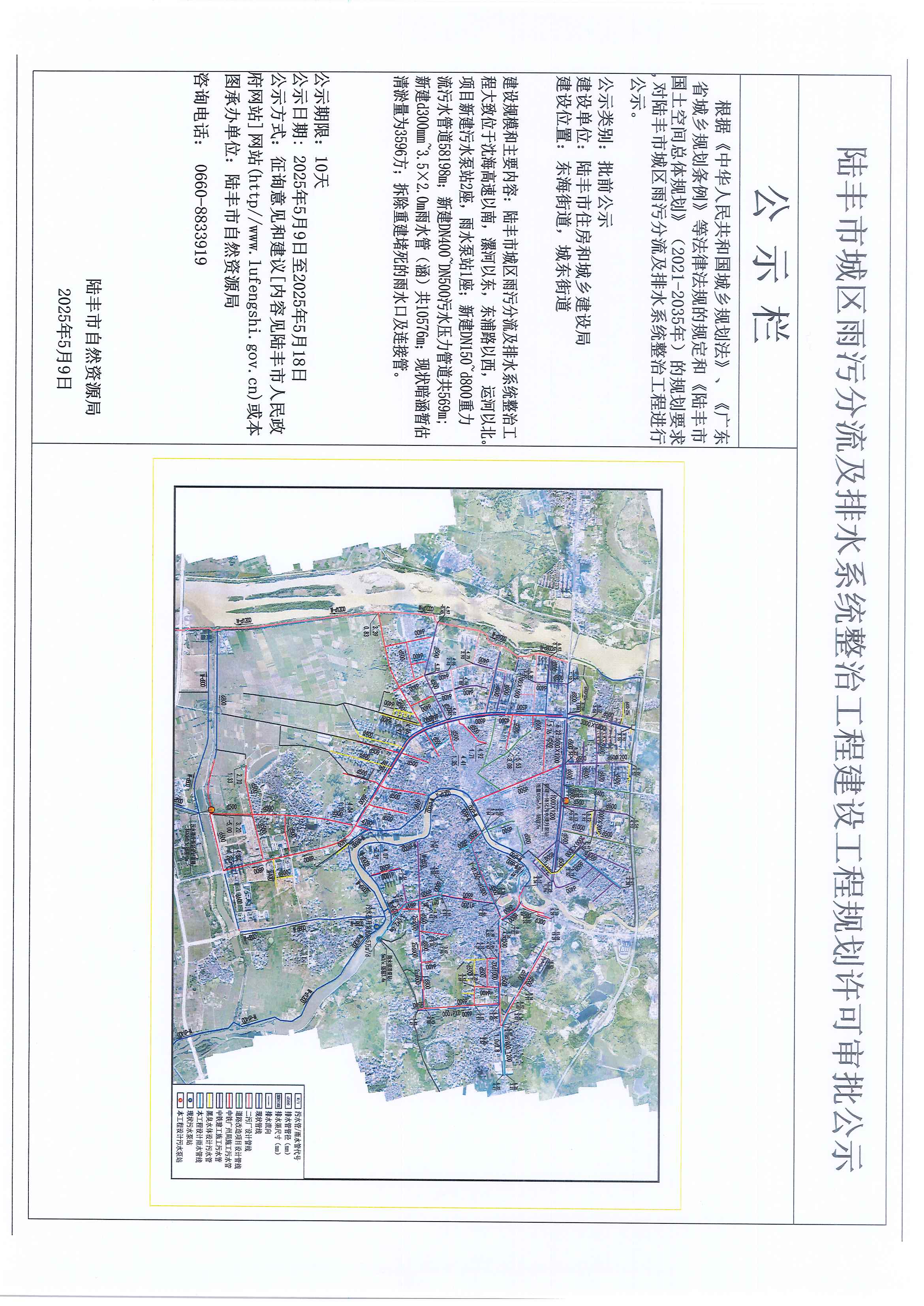 陸豐市城區(qū)雨污分流及排水系統(tǒng)整治工程建設(shè)工程規(guī)劃許可審批公示
