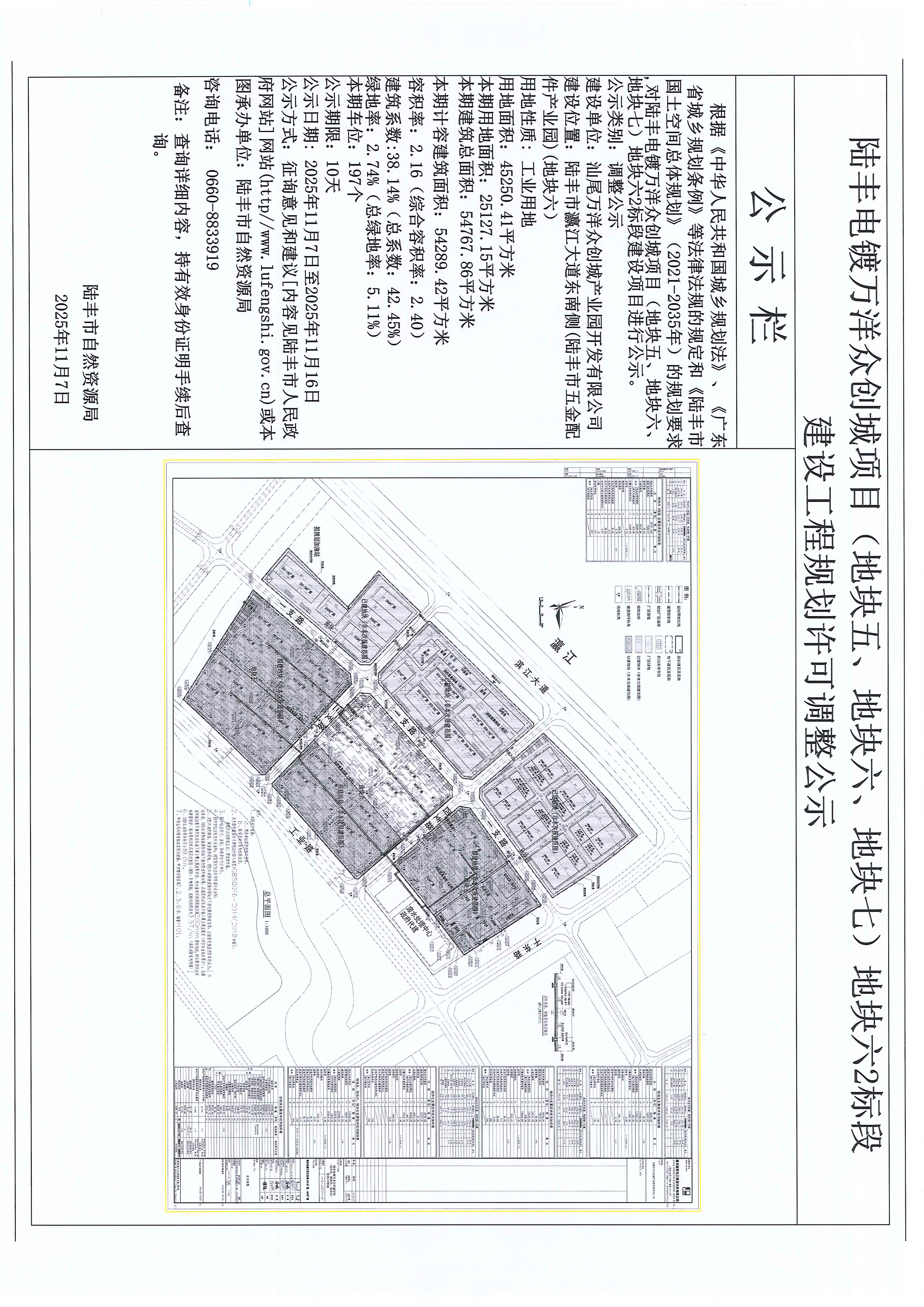 陸豐電鍍?nèi)f洋眾創(chuàng)城項(xiàng)目(地塊五、地塊六、地塊七)地塊六2標(biāo)段建設(shè)工程規(guī)劃許可調(diào)整公示