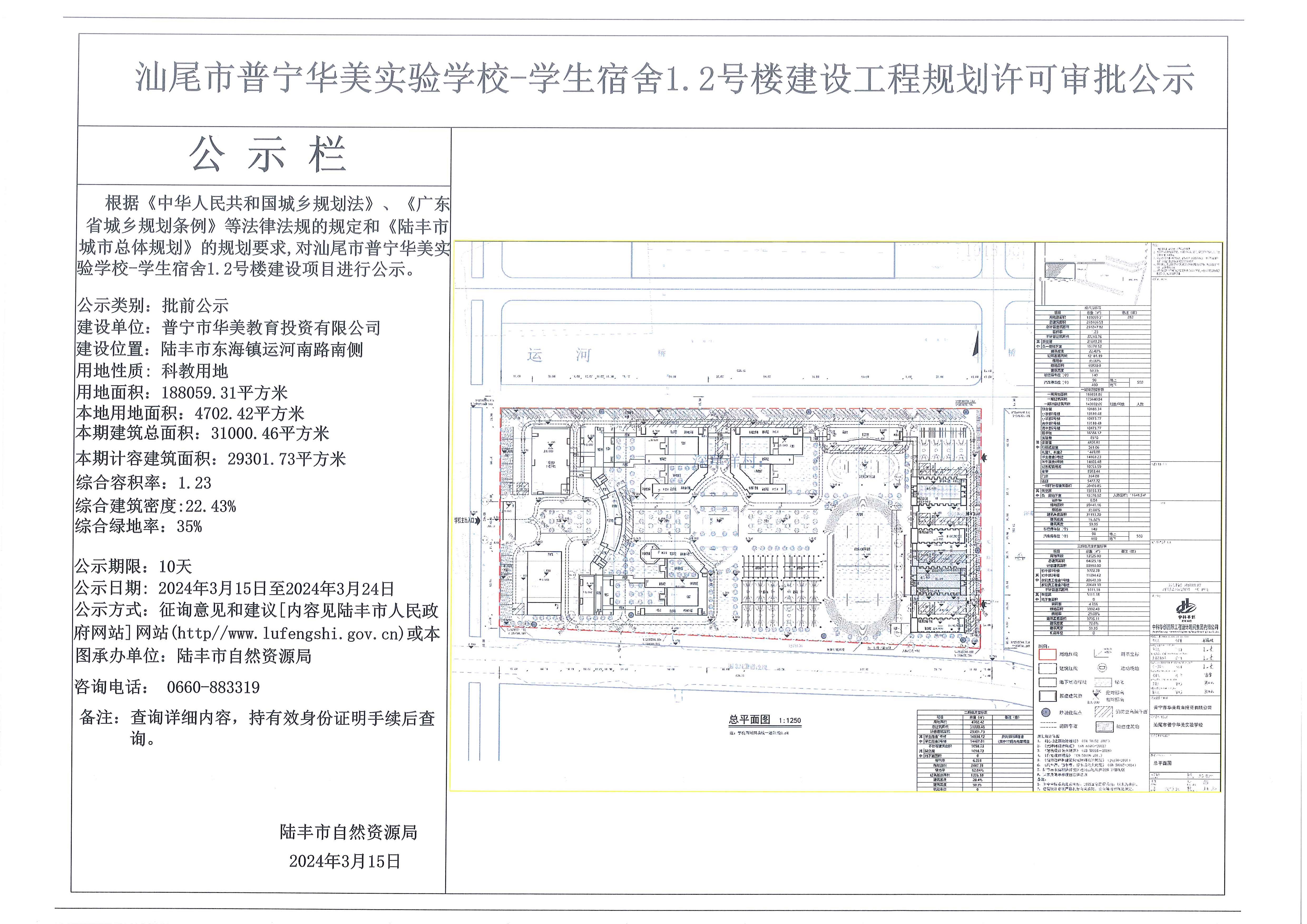 汕尾市普寧華美實驗學(xué)校-學(xué)生宿舍1.2號樓建設(shè)工程規(guī)劃許可審批公示