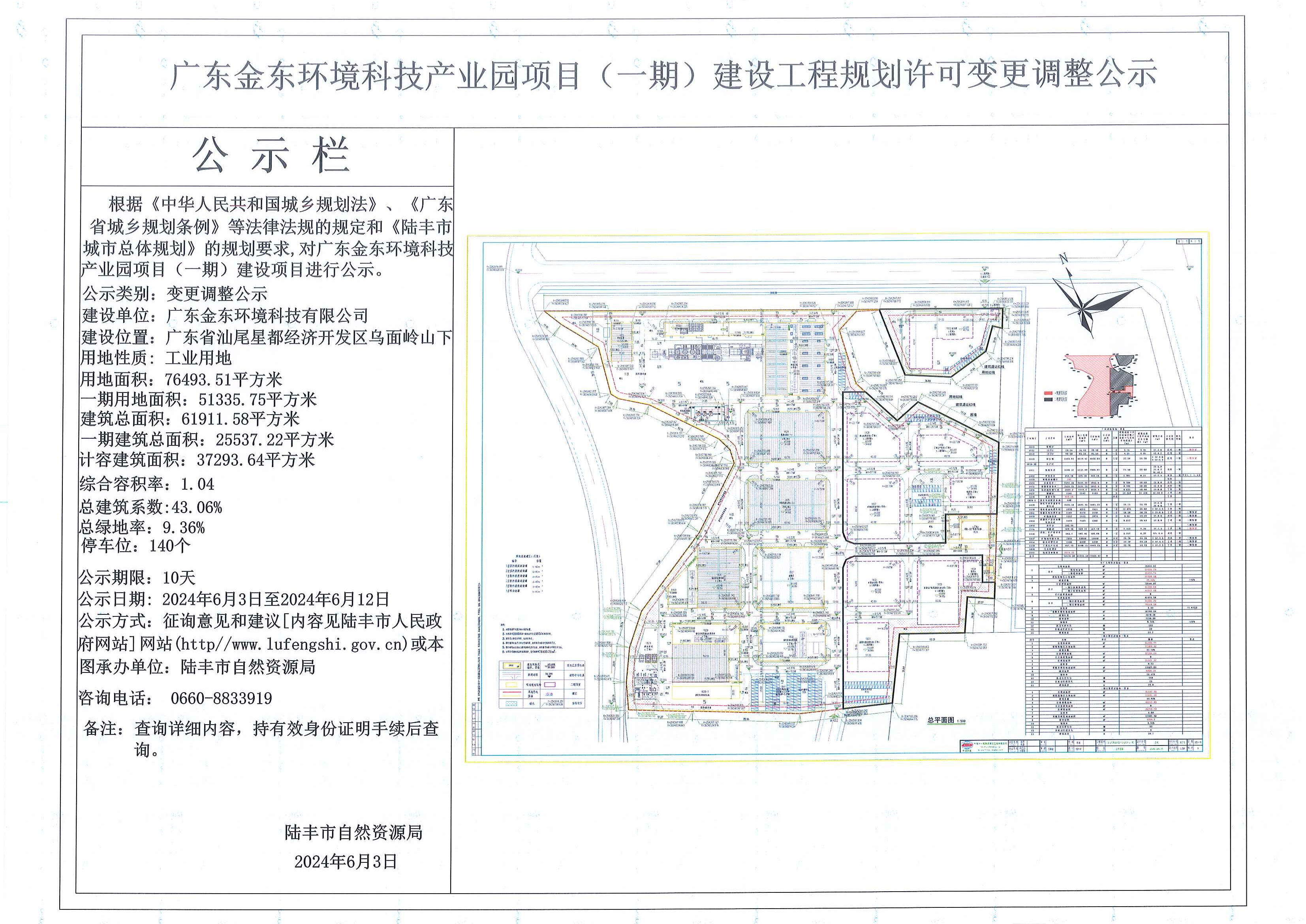 廣東金東環(huán)境科技產(chǎn)業(yè)園項(xiàng)目(一期)建設(shè)工程規(guī)劃許可變更調(diào)整公示
