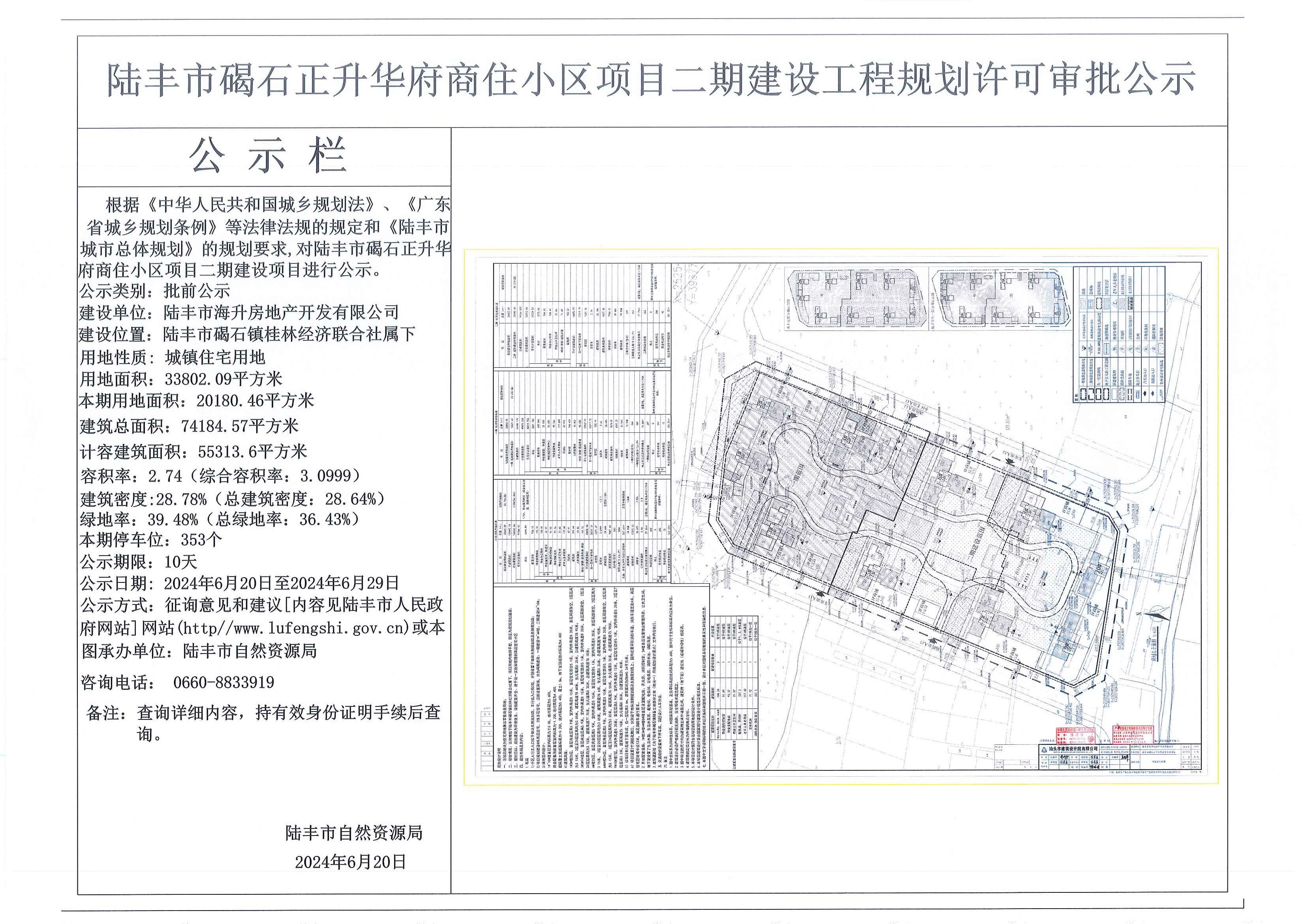 陸豐市碣石正升華府商住小區(qū)項目二期建設(shè)工程規(guī)劃許可審批公示