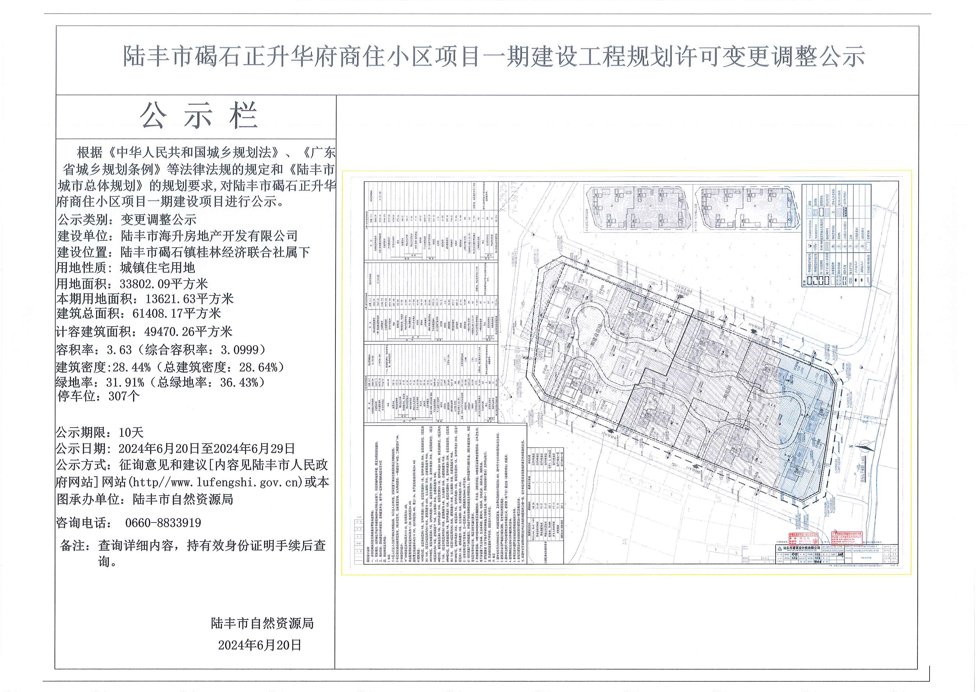 陸豐市碣石正升華府商住小區(qū)項(xiàng)目一期建設(shè)工程規(guī)劃許可變更調(diào)整公示