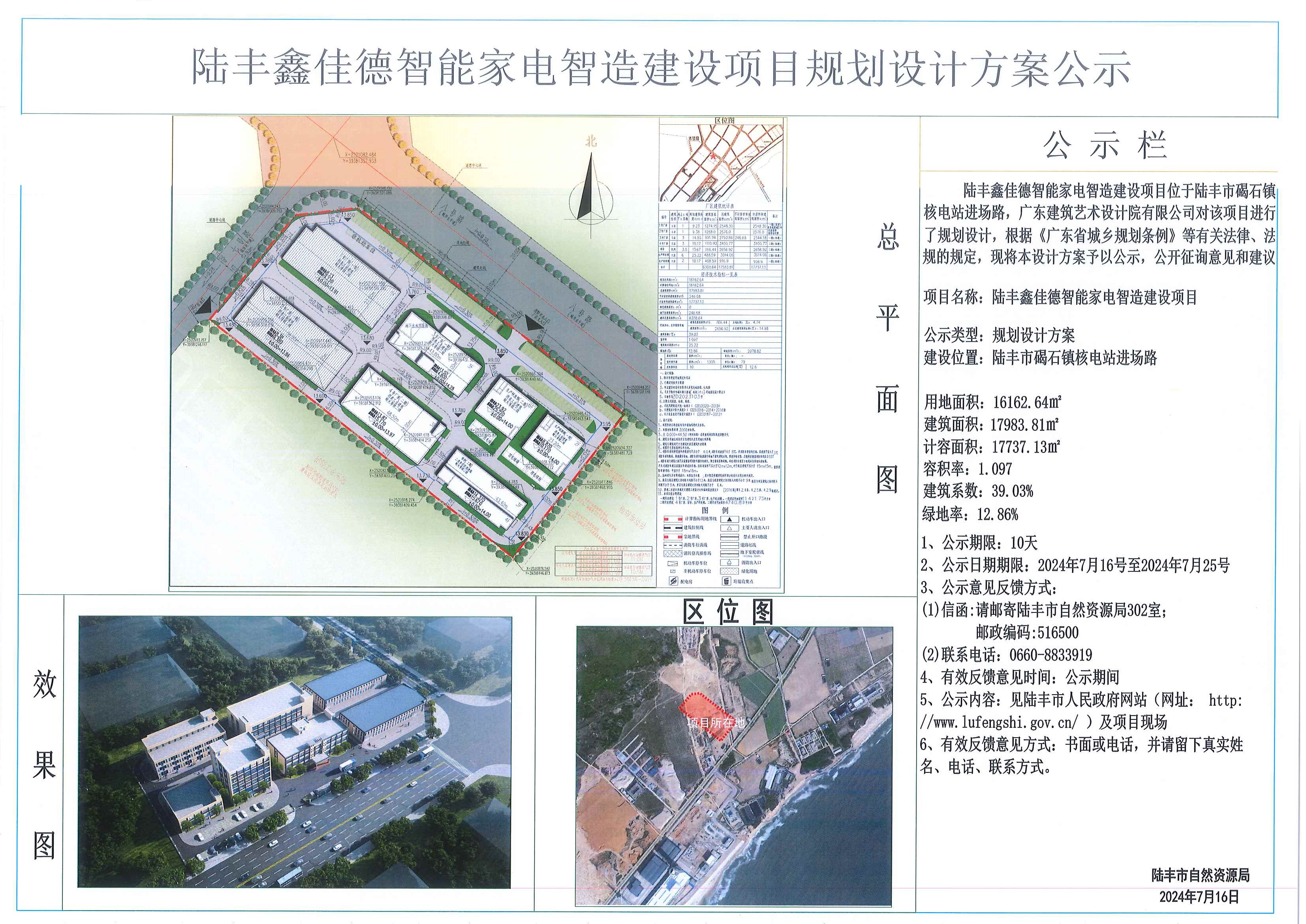 陸豐鑫佳德智能家電智造建設(shè)項(xiàng)目規(guī)劃設(shè)計(jì)方案公示