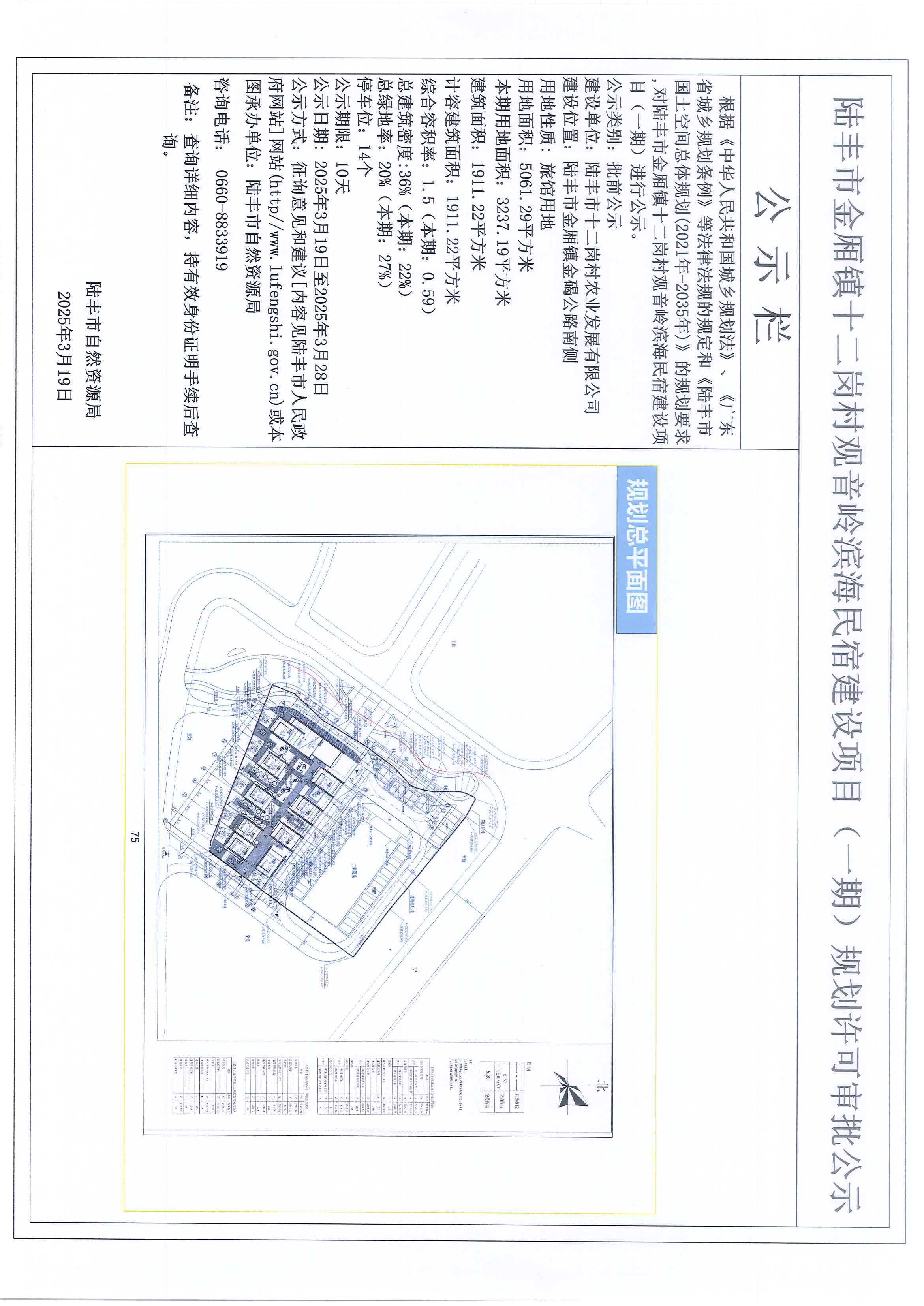 陸豐市金廂鎮(zhèn)十二崗村觀音嶺濱海民宿建設(shè)項(xiàng)目(一期)規(guī)劃許可審批公示