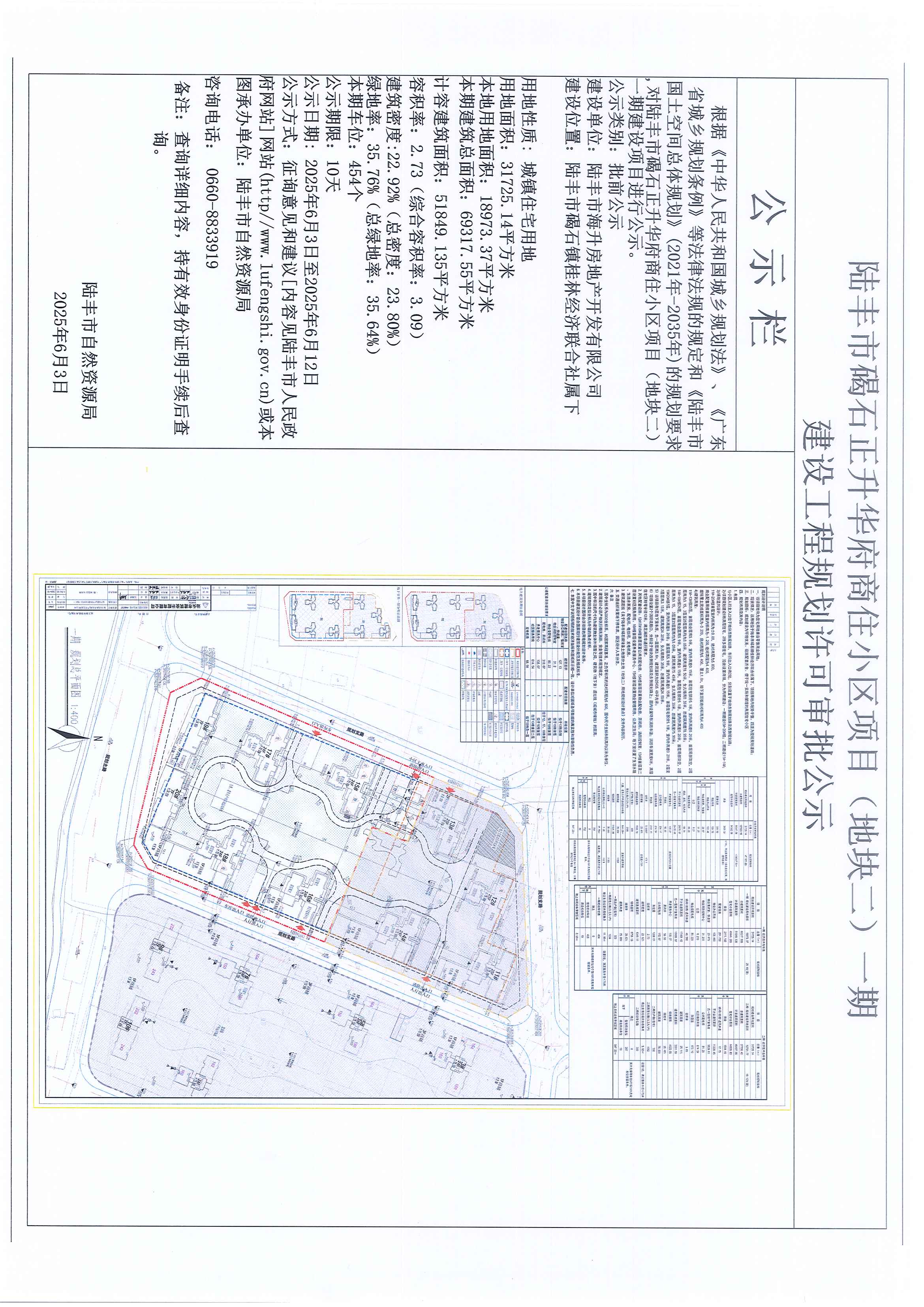 陸豐市碣石正升華府商住小區(qū)項目(地塊二)一期建設(shè)工程規(guī)劃許可審批公示
