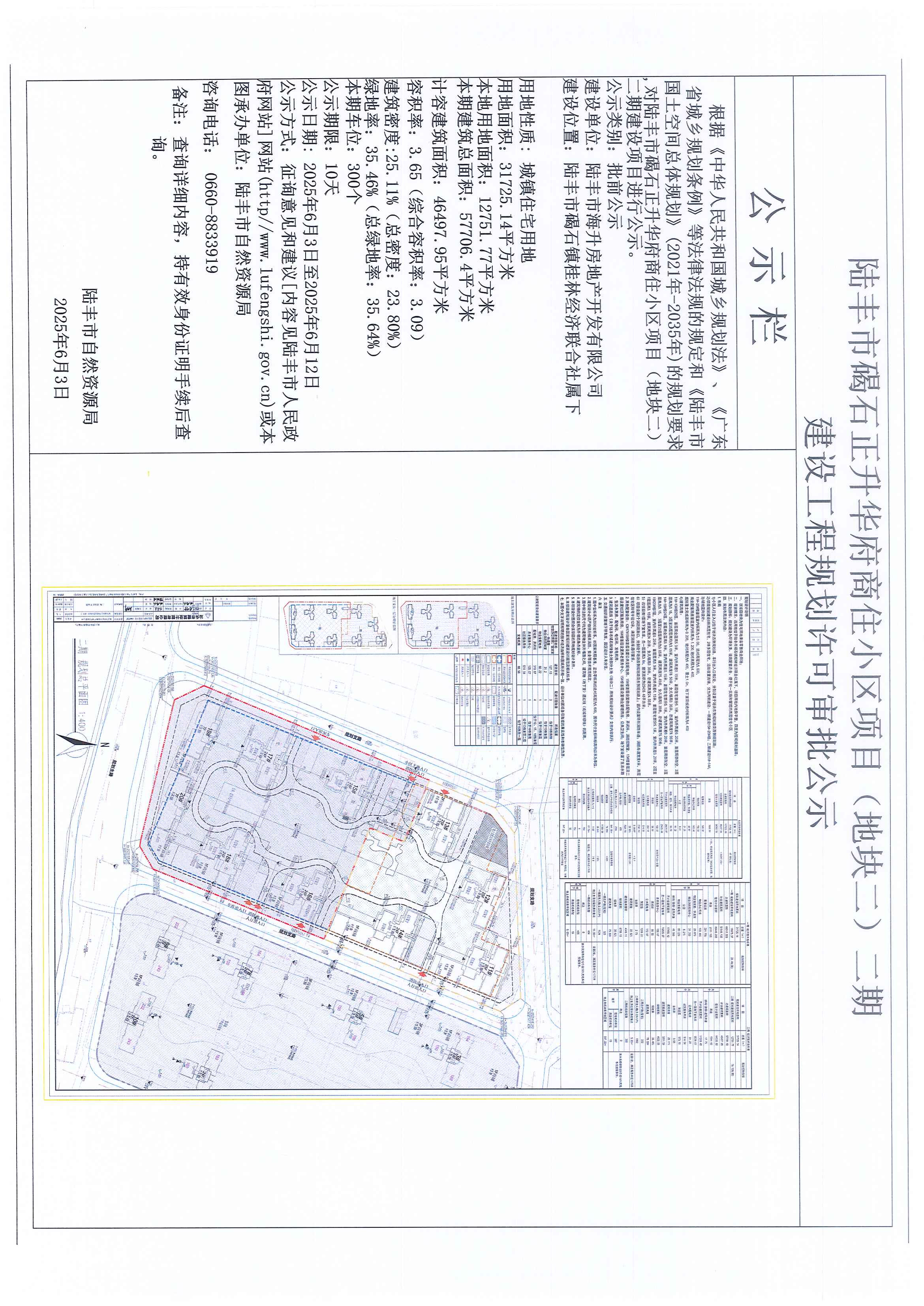 陸豐市碣石正升華府商住小區(qū)項(xiàng)目(地塊二)二期建設(shè)工程規(guī)劃許可審批公示