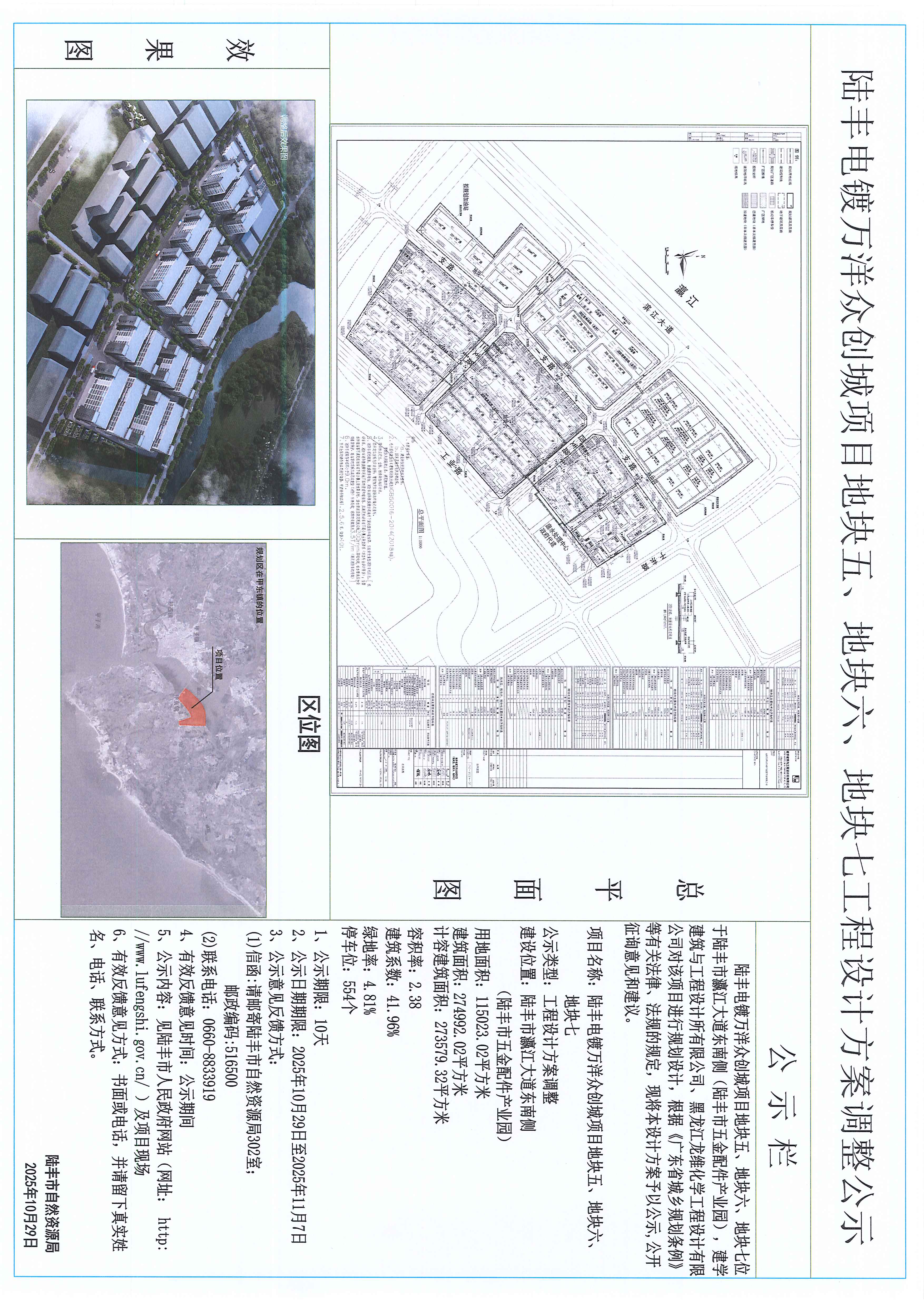 陸豐電鍍?nèi)f洋眾創(chuàng)城項(xiàng)目地塊五、地塊六、地塊七工程設(shè)計(jì)方案調(diào)整公示