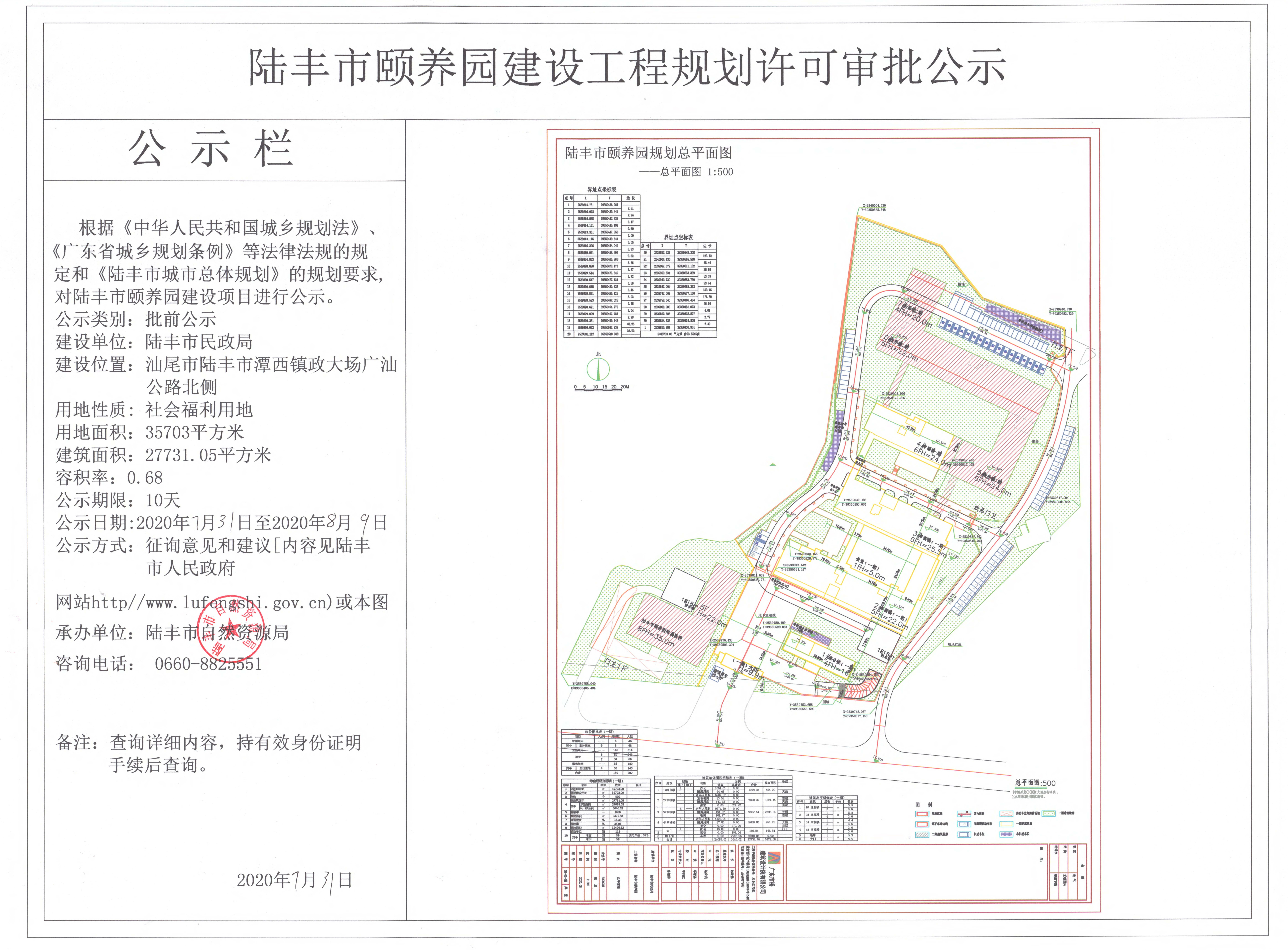 陸豐市頤養(yǎng)園建設(shè)工程規(guī)劃許可審批公示