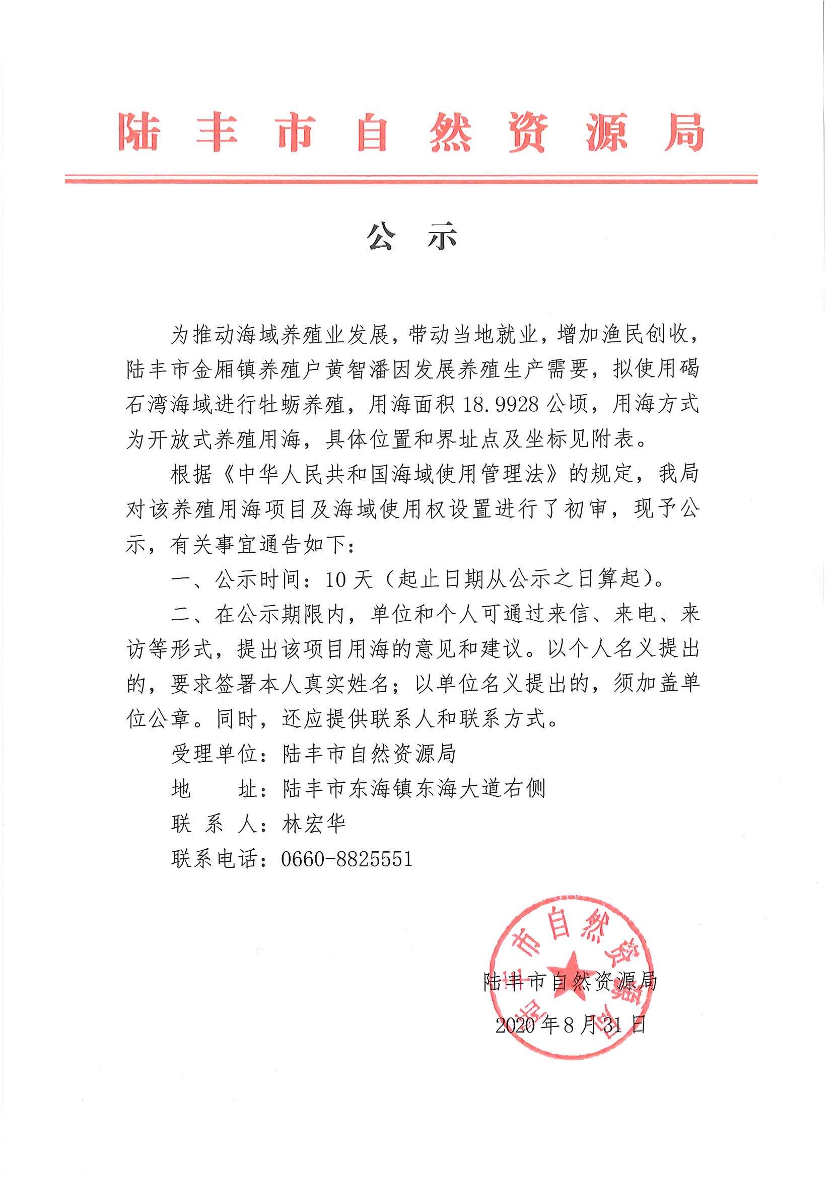公示(黃智潘養(yǎng)殖區(qū)宗海位置圖、宗海界址圖)