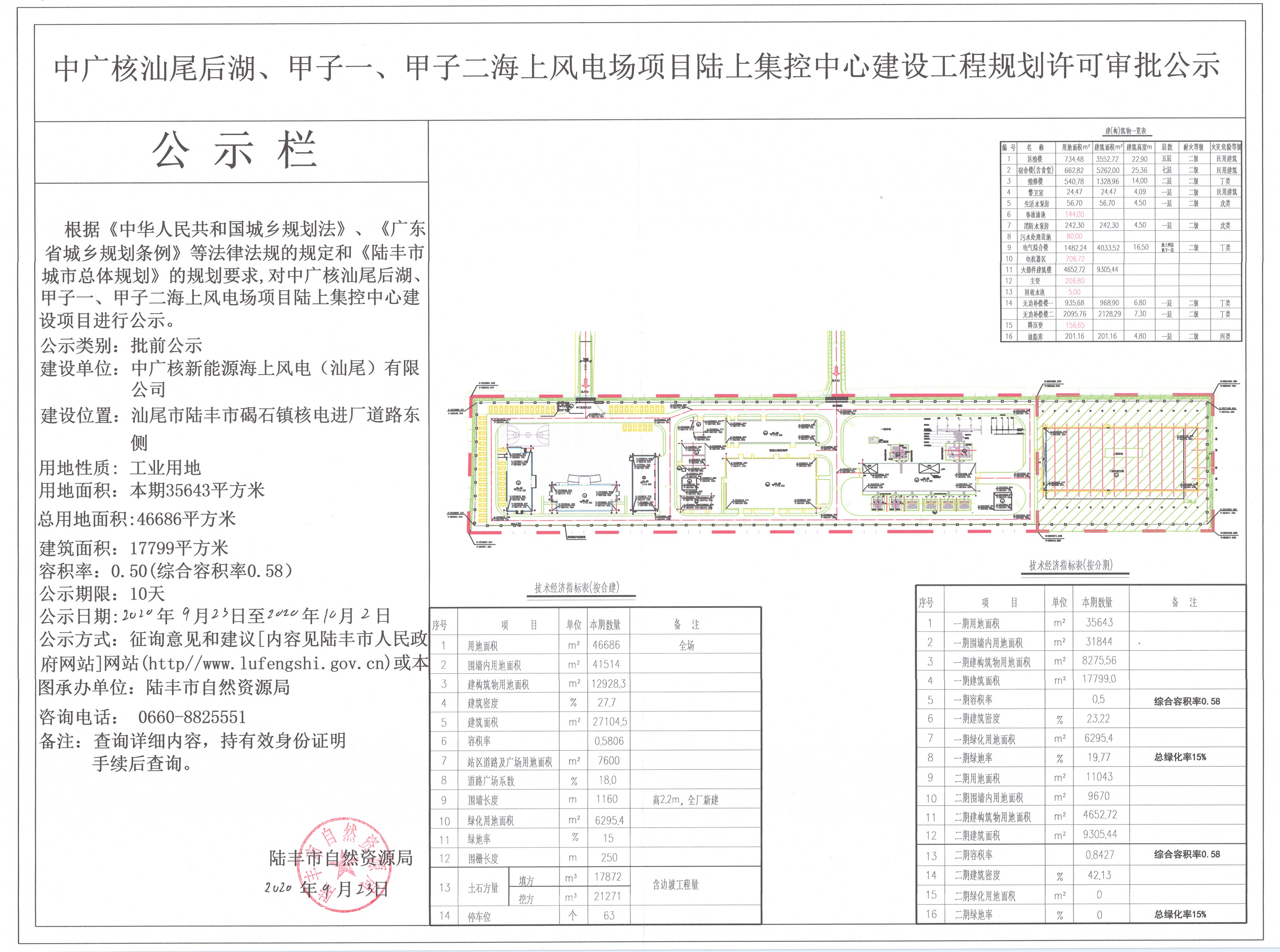 中廣核汕尾后湖、甲子一、甲子二海上風(fēng)電場(chǎng)項(xiàng)目陸上集控中心建設(shè)工程規(guī)劃許可審批公示