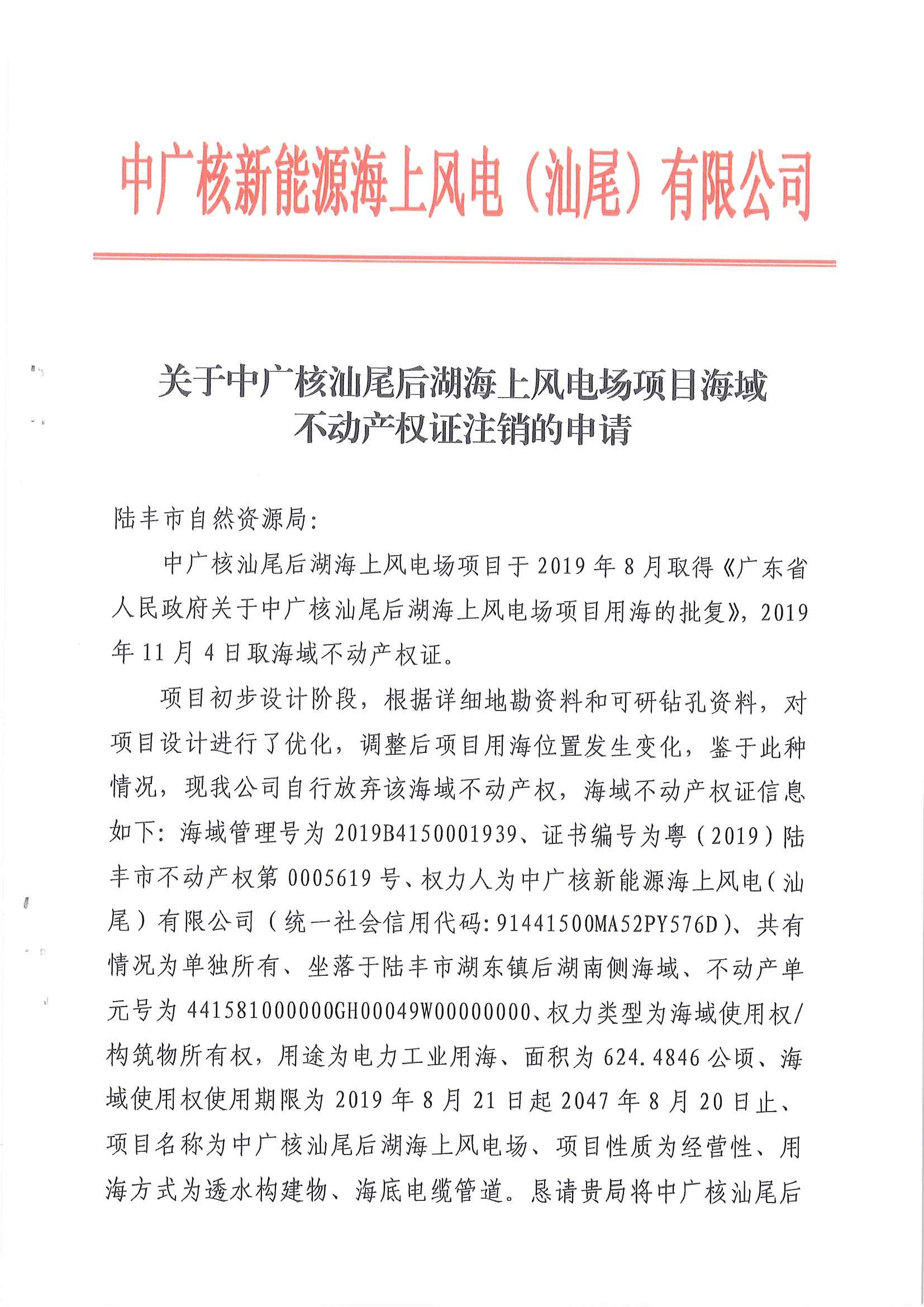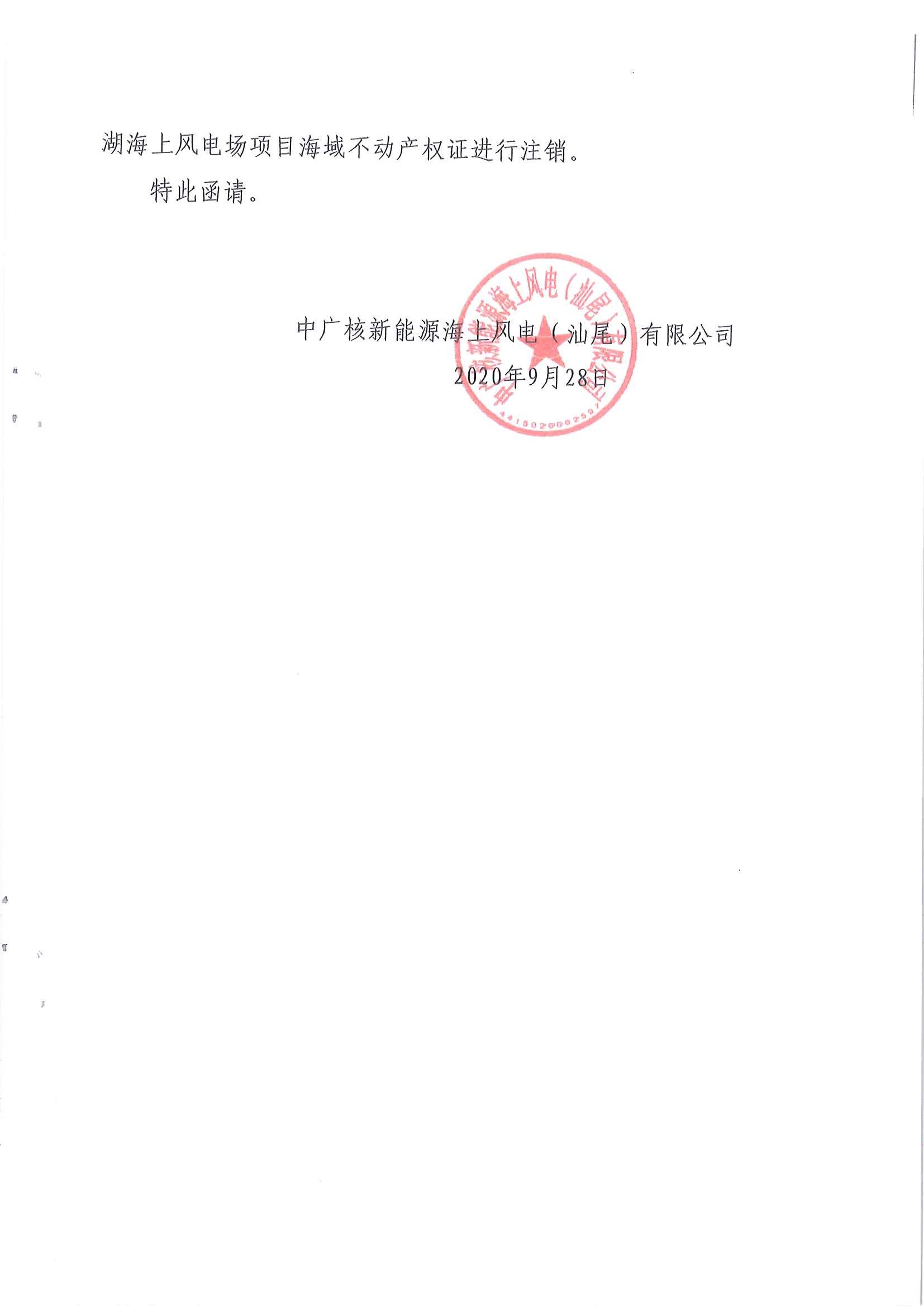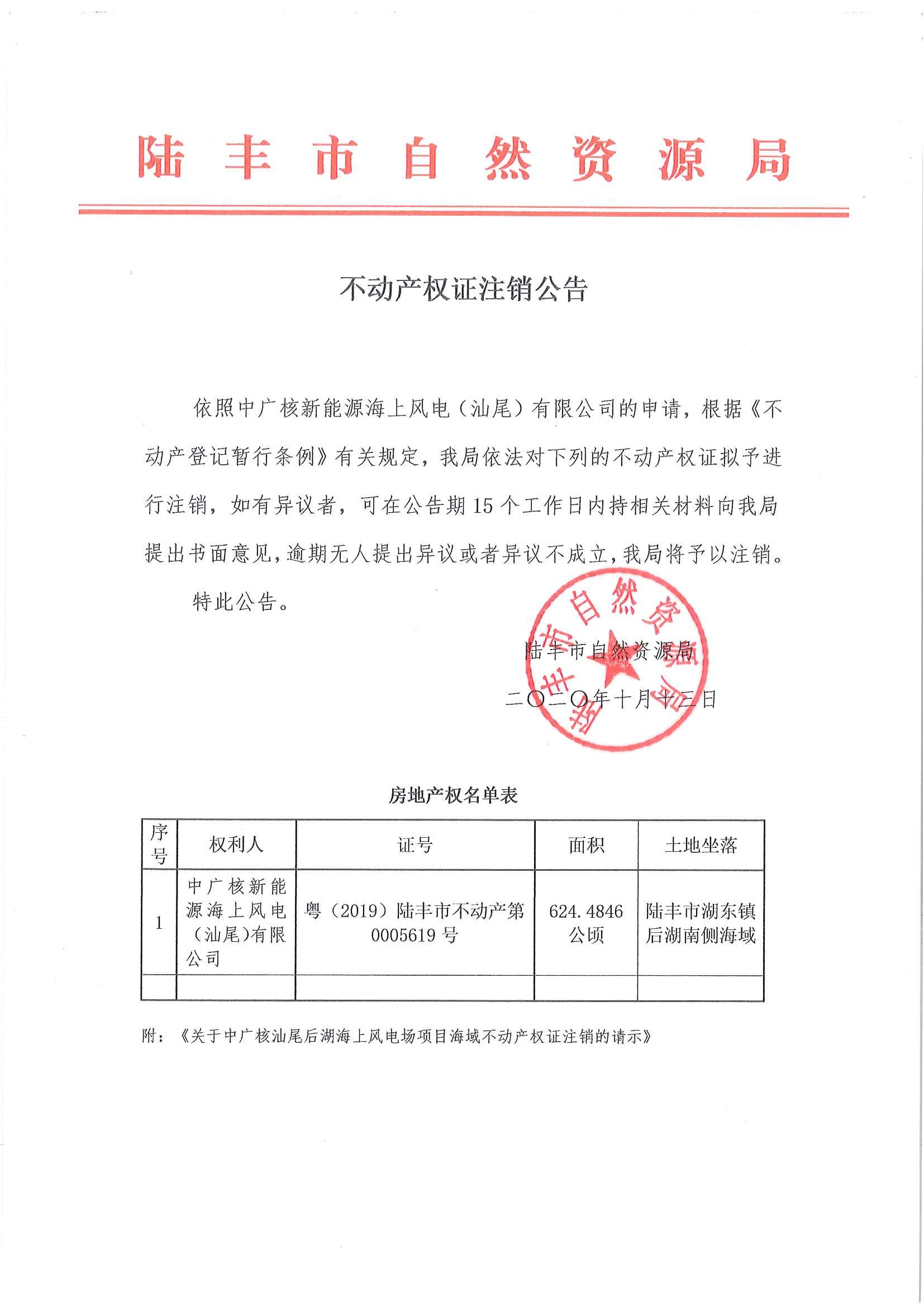 不動產(chǎn)權(quán)證注銷公告【中廣核新能源海上風電(汕尾)有限公司】