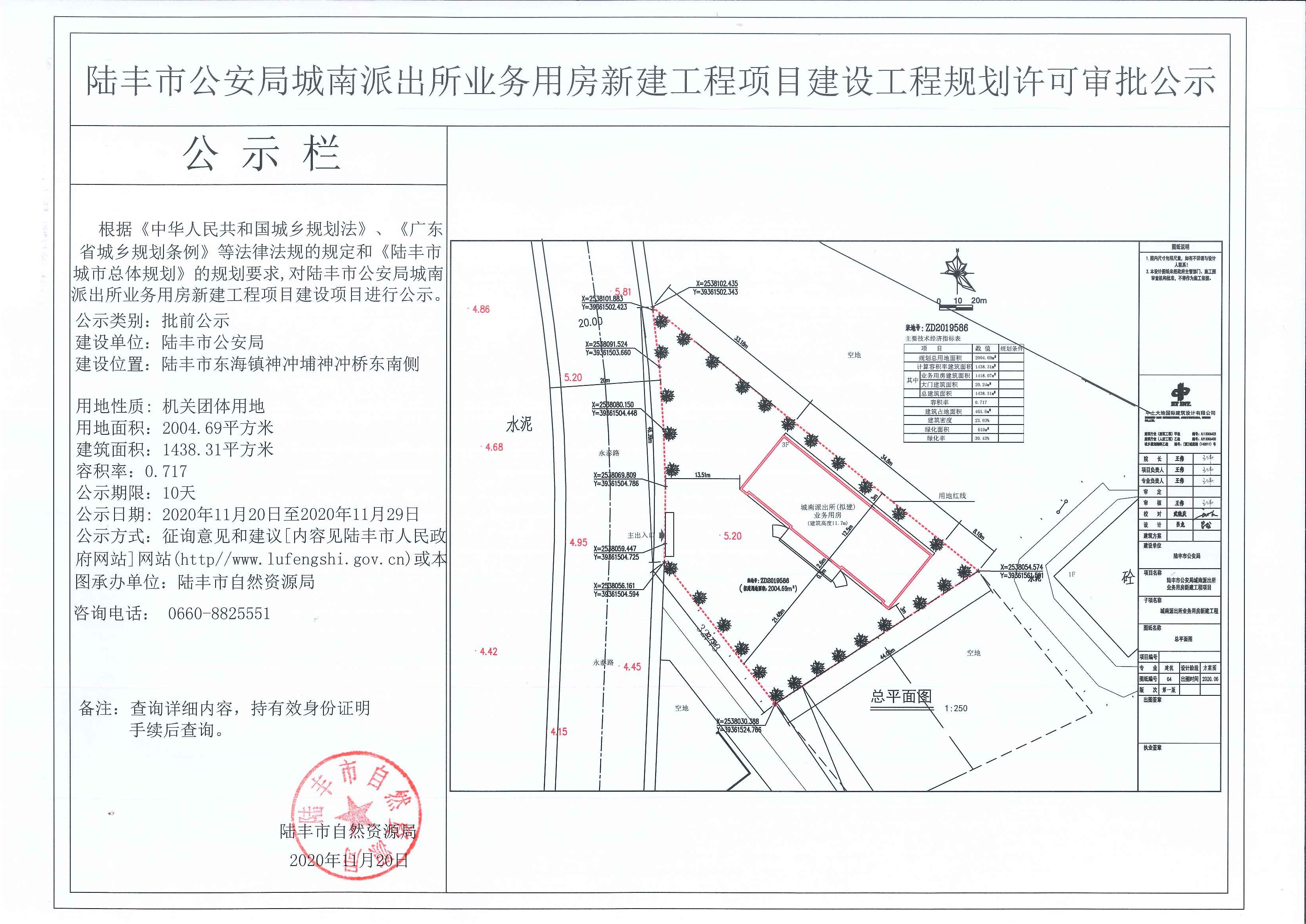陸豐市公安局城南派出所業(yè)務(wù)用房新建工程項目建設(shè)工程規(guī)劃許可審批公示
