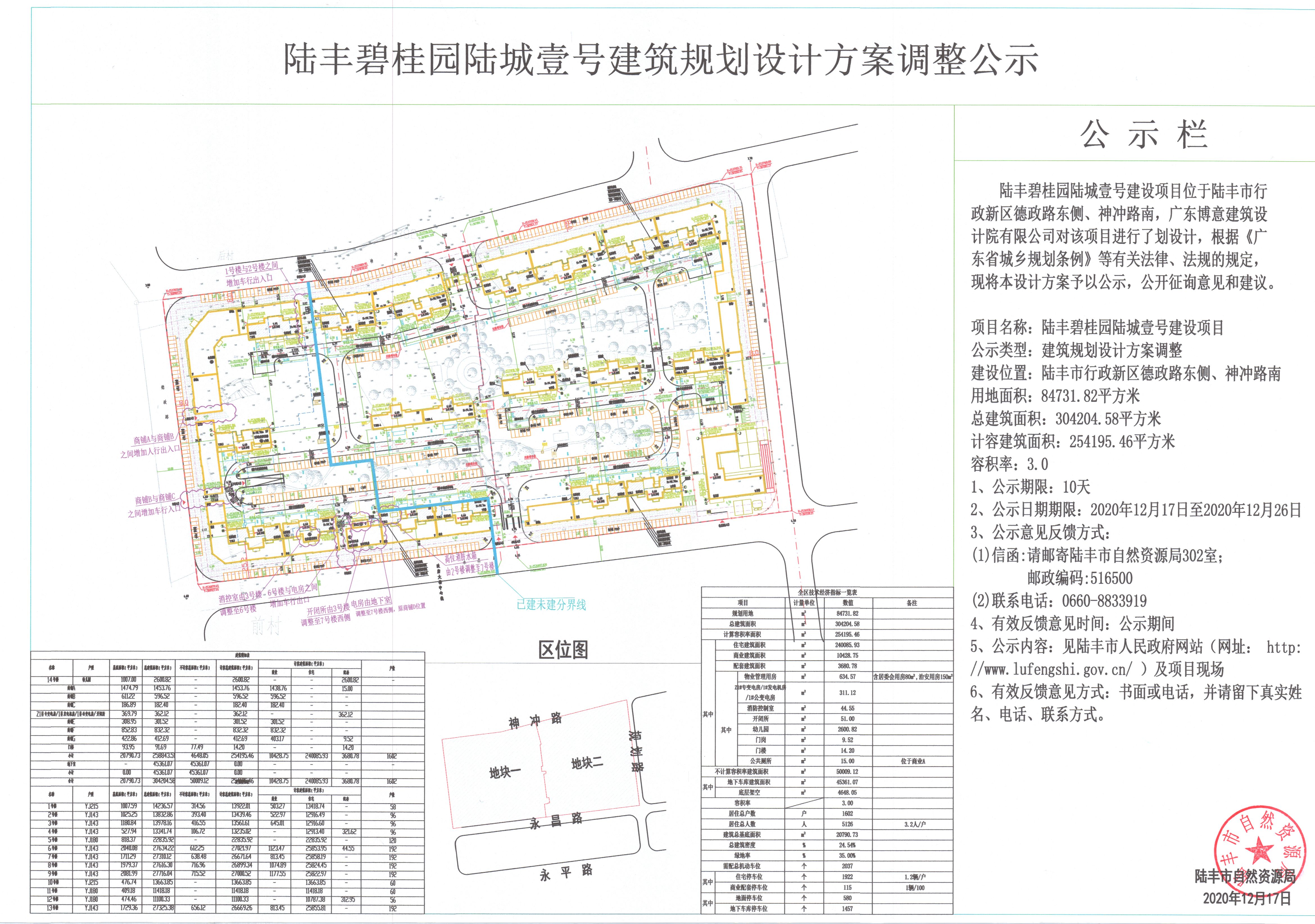 陸豐碧桂園陸城壹號(hào)建筑規(guī)劃設(shè)計(jì)方案調(diào)整公示