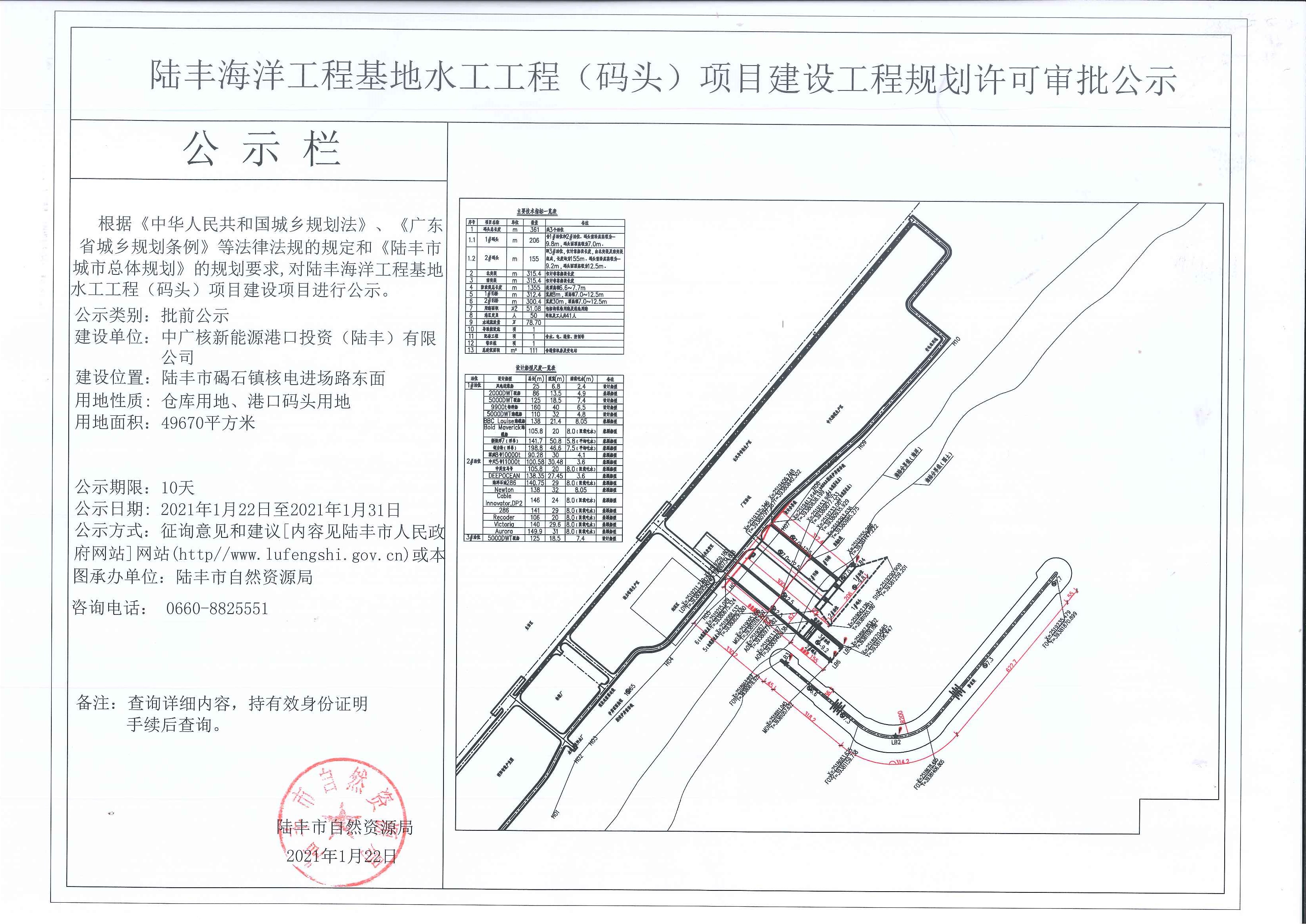 陸豐海洋工程基地水工工程(碼頭)項目建設(shè)工程規(guī)劃許可審批公示