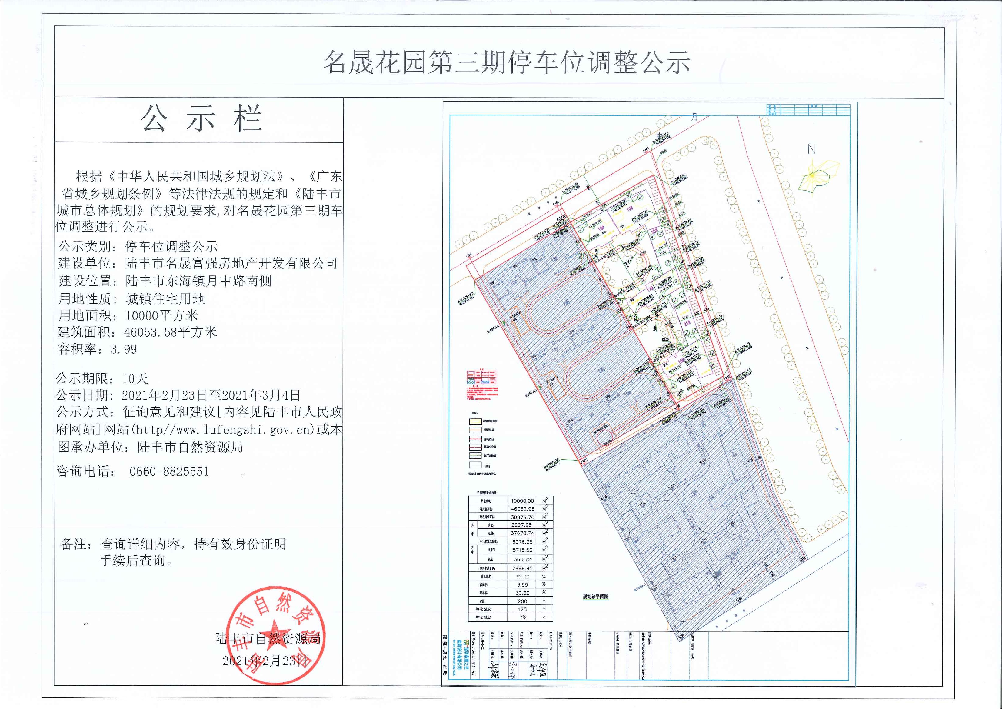 名晟花園第三期停車位調(diào)整公示