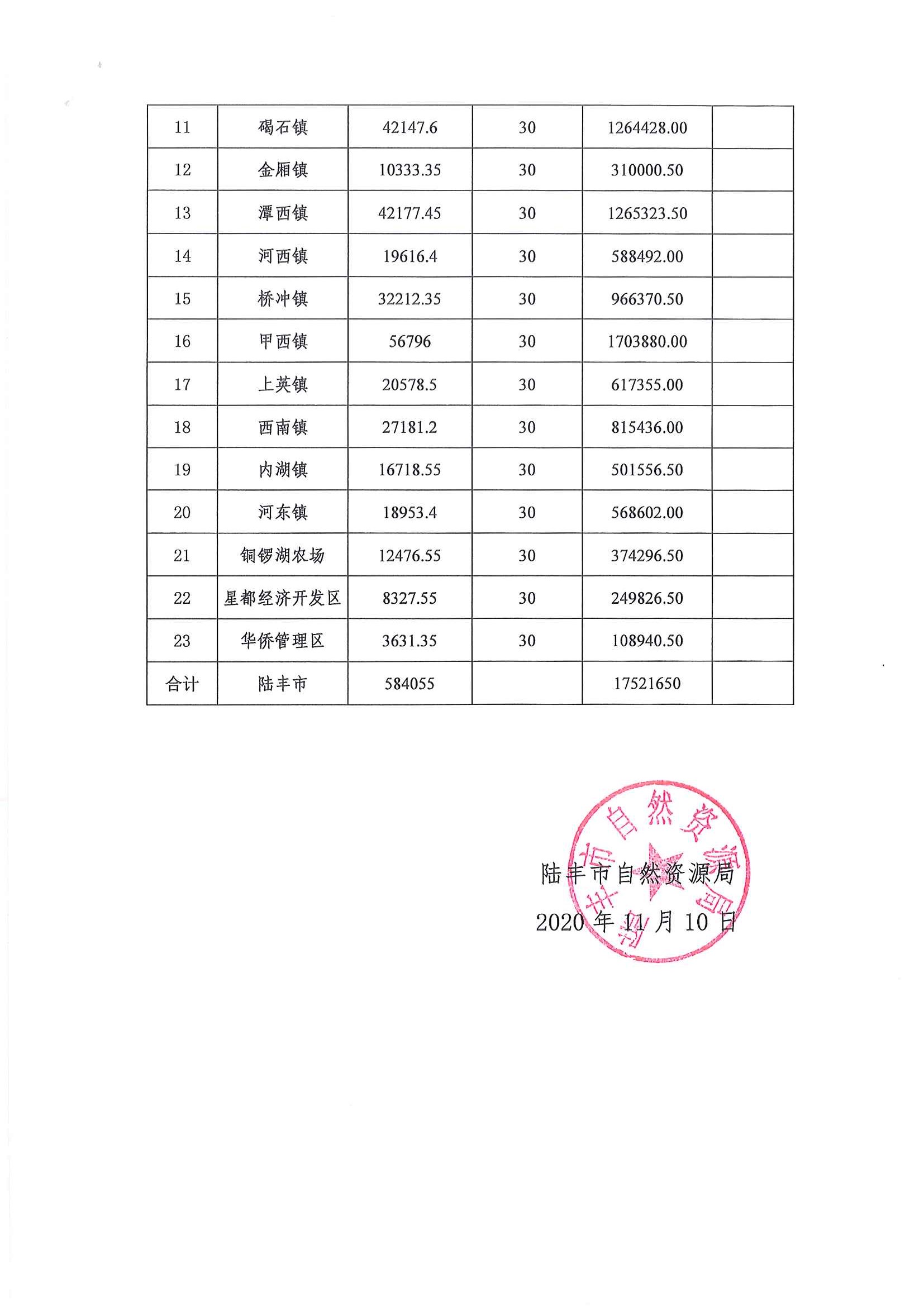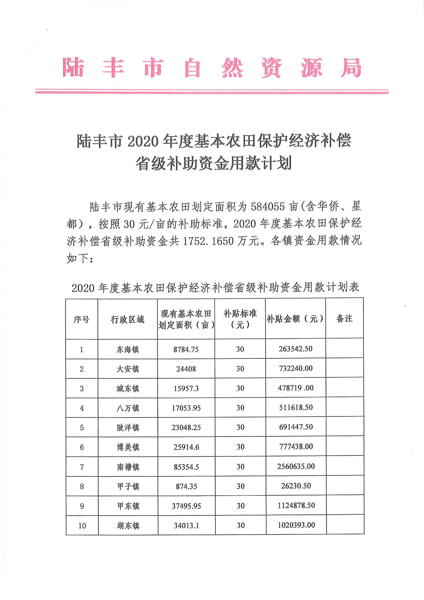 陸豐市2020年度基本農(nóng)田保護經(jīng)濟補償省級補助資金用款計劃