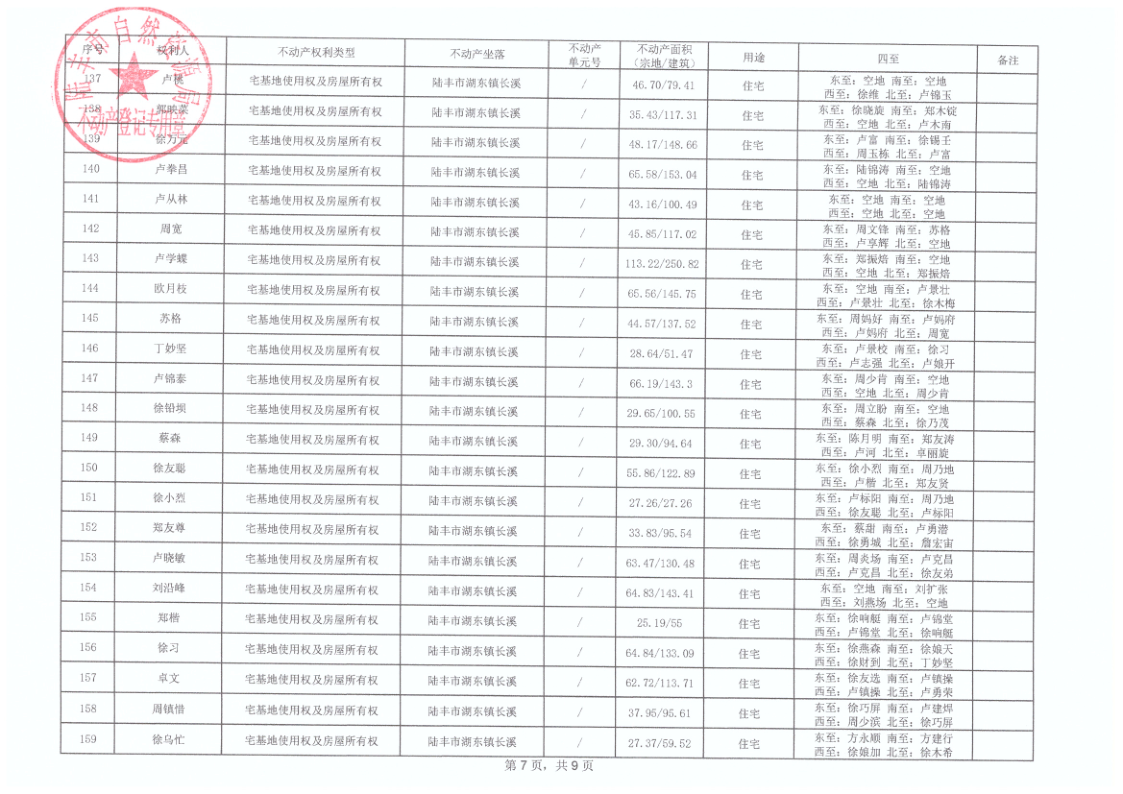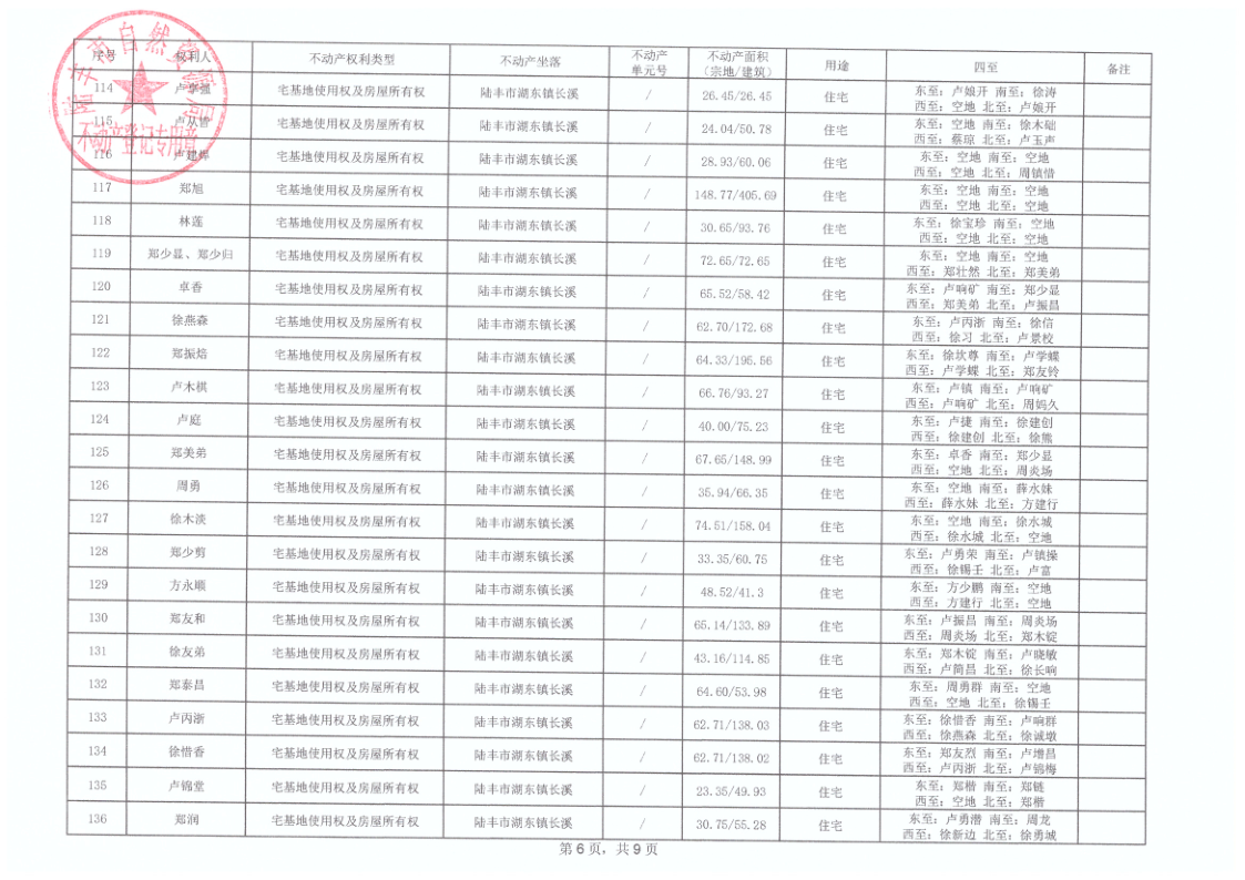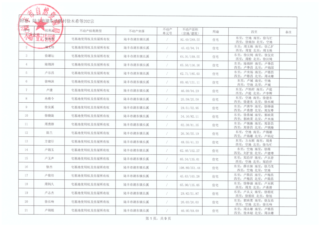 湖東鎮(zhèn)長溪村首次登記公告