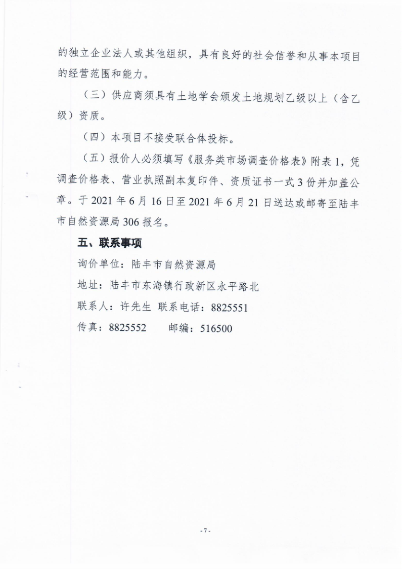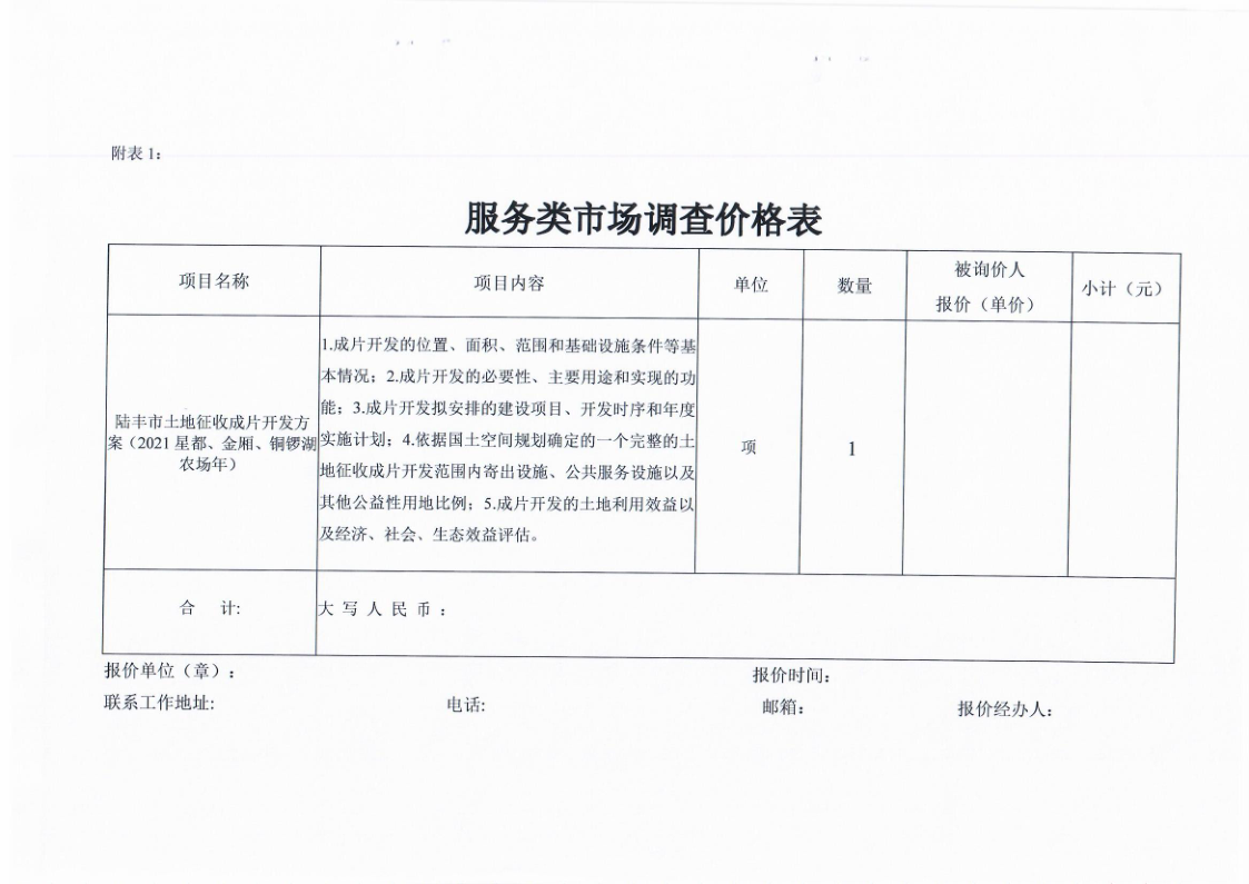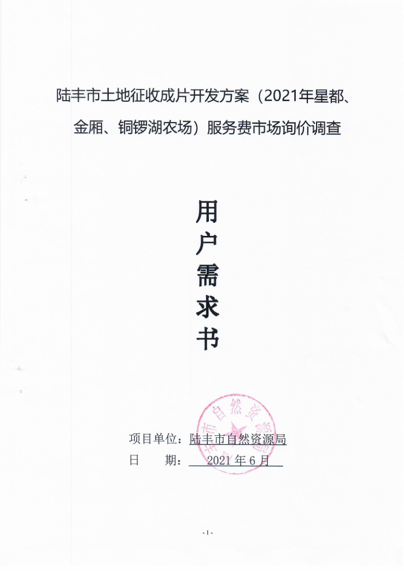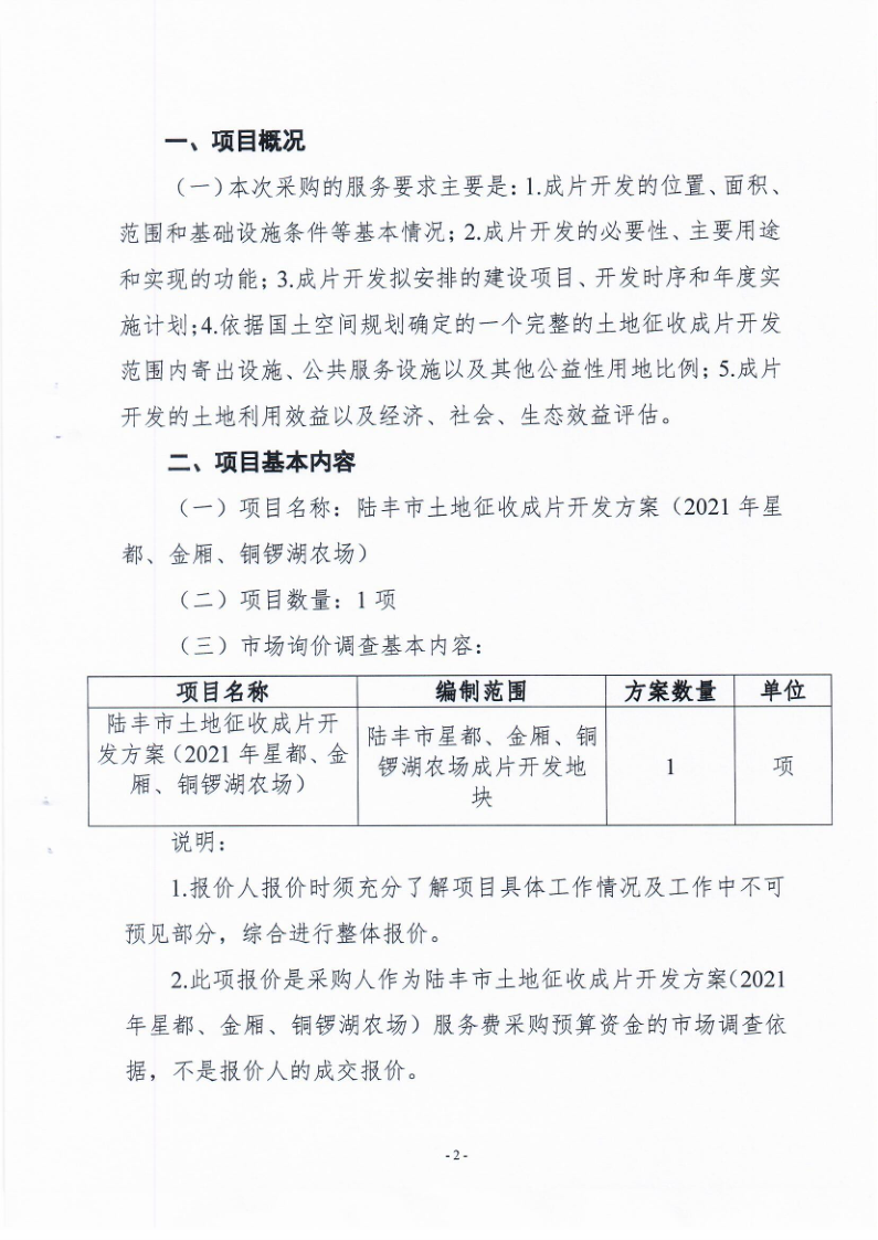 陸豐市土地征收成片開發(fā)方案(2021年)星都、金廂、銅鑼湖農(nóng)場服務費市場詢價調(diào)查需求書