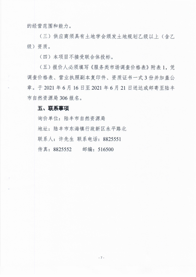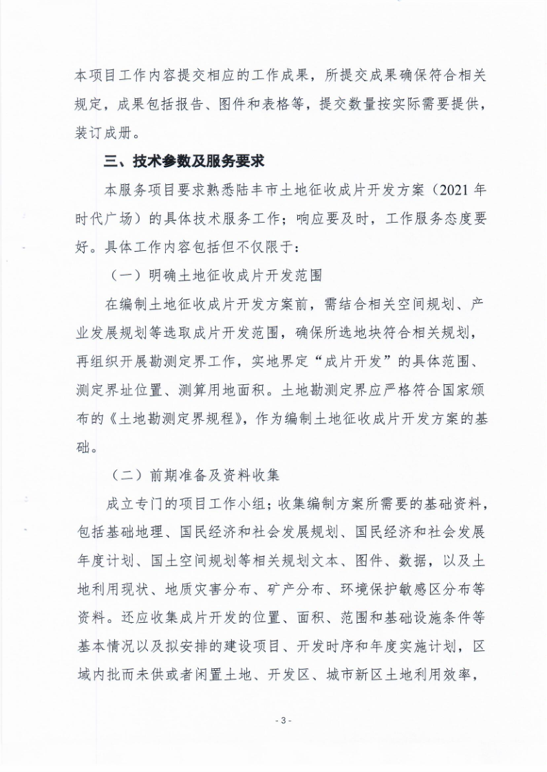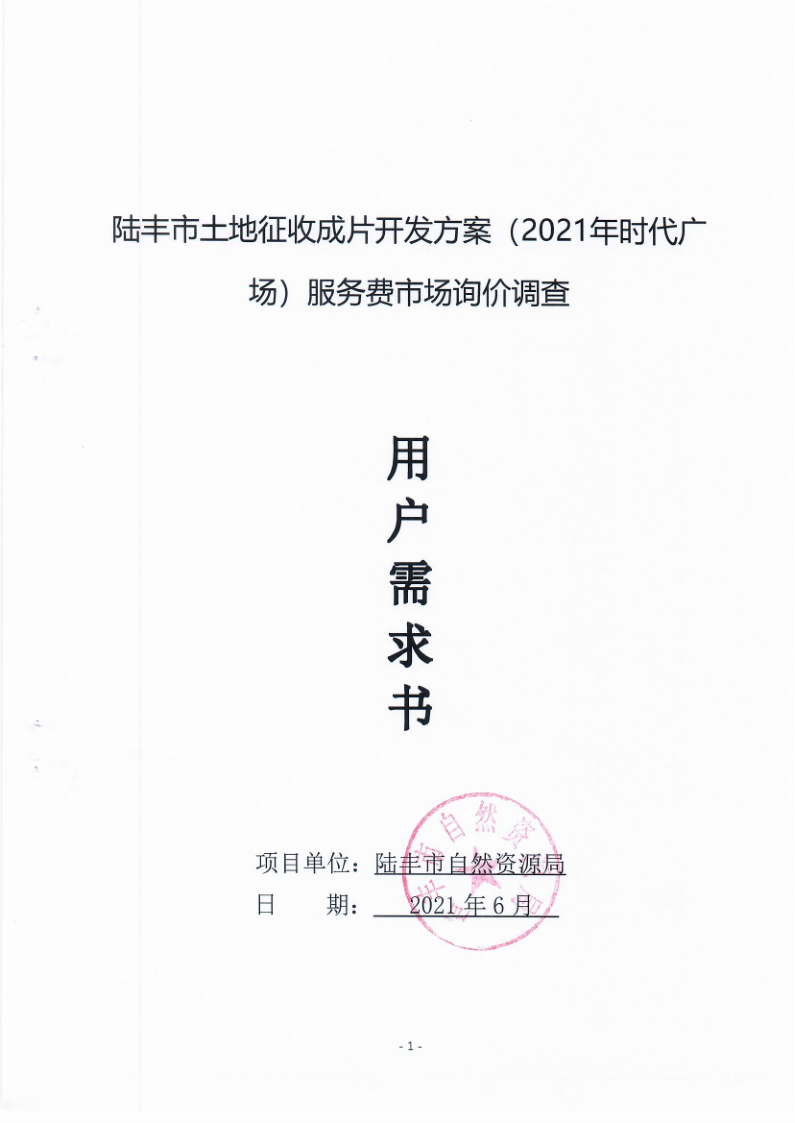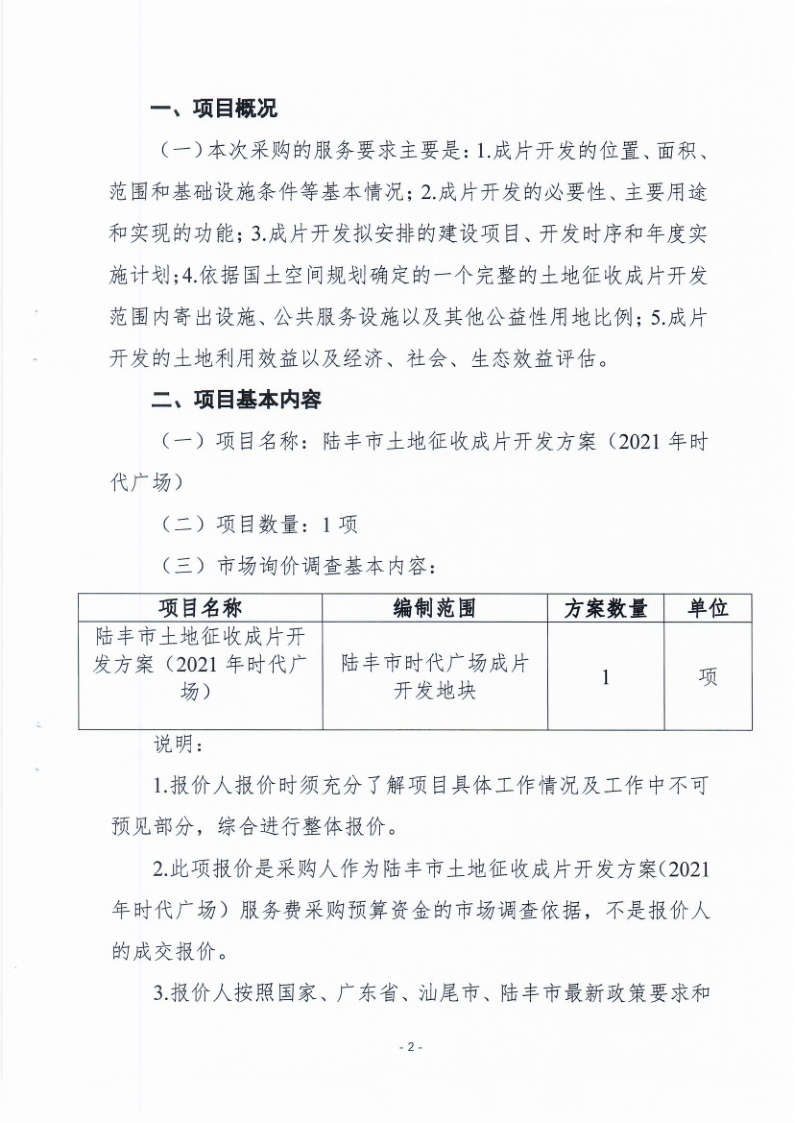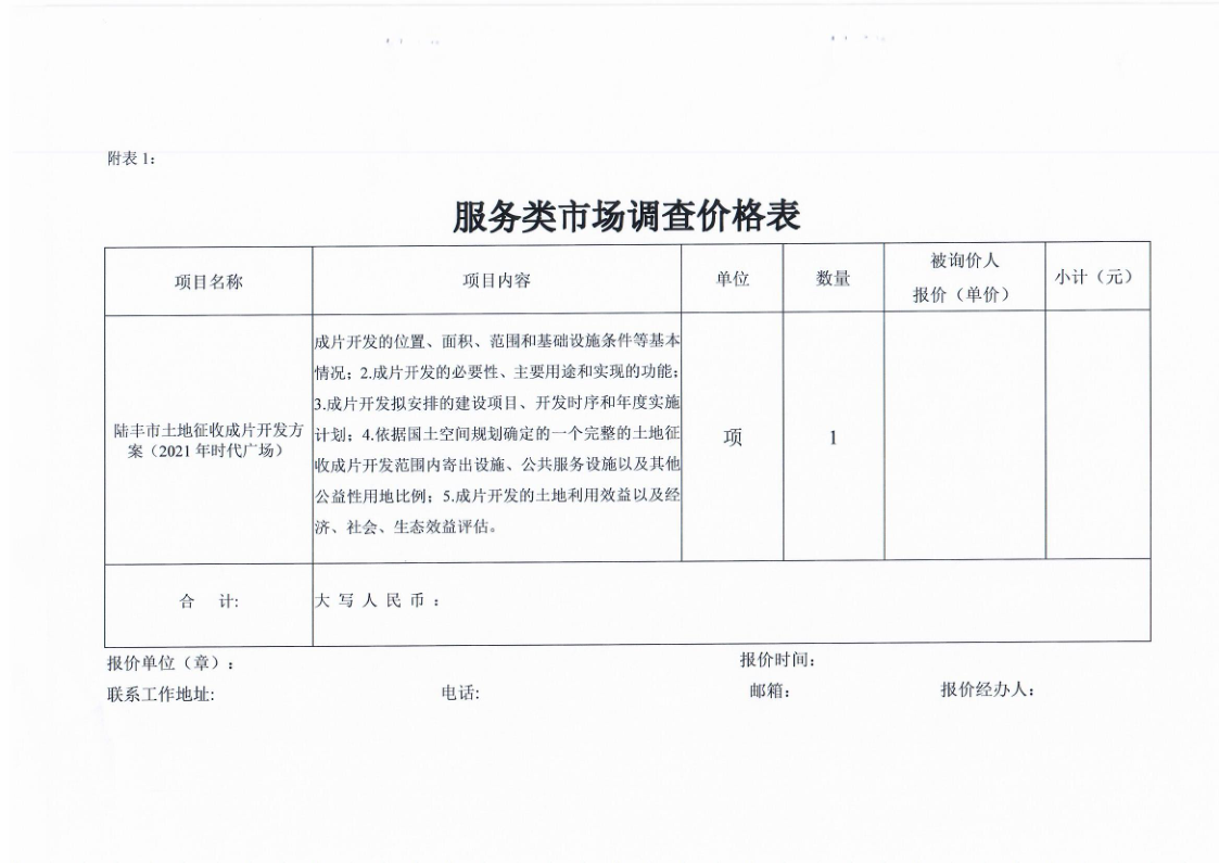陸豐市土地征收成片開發(fā)方案(2021年)時代廣場服務(wù)費市場詢價調(diào)查需求書