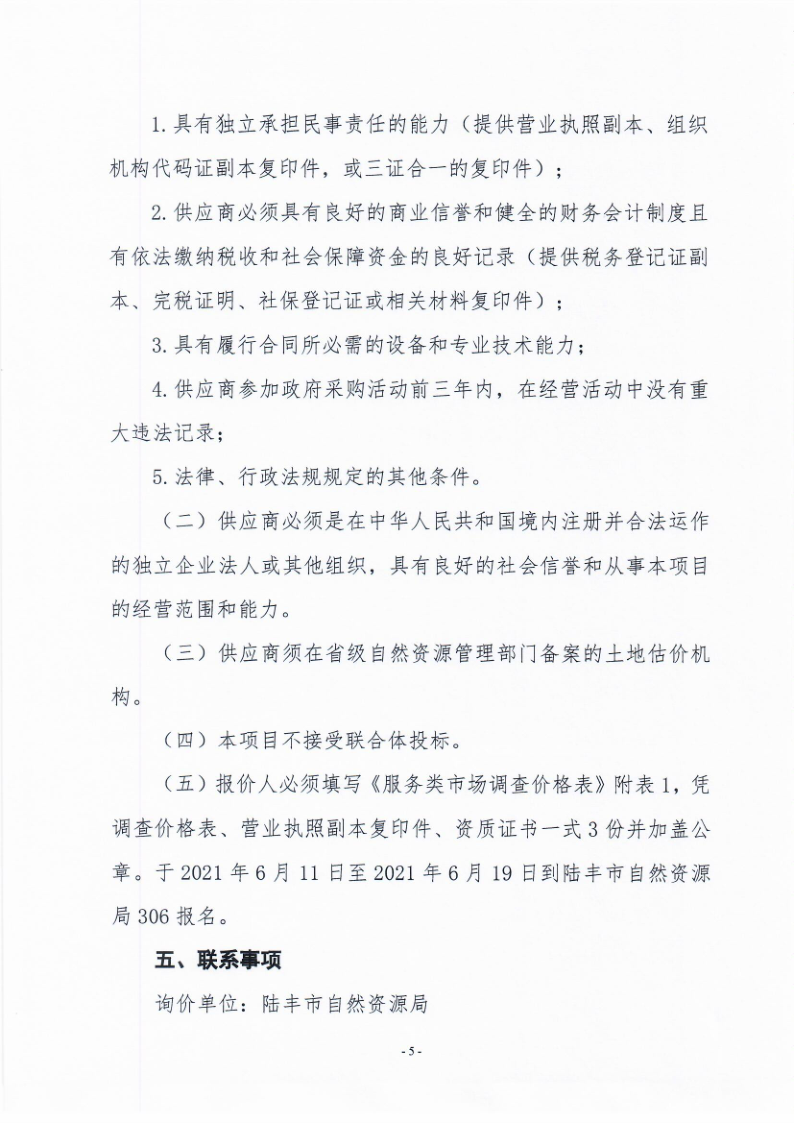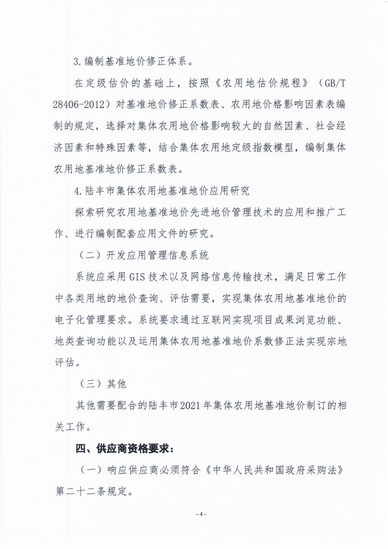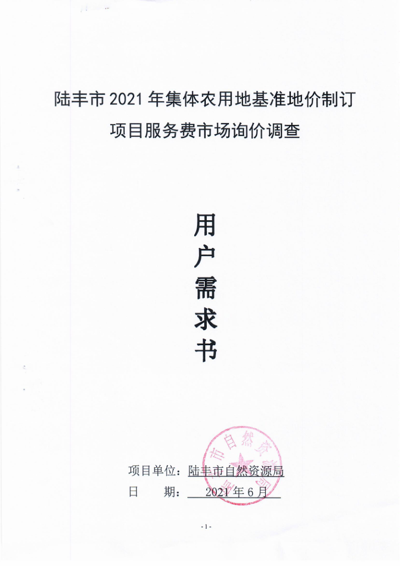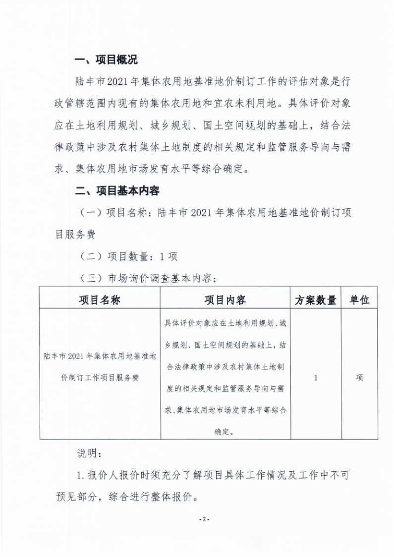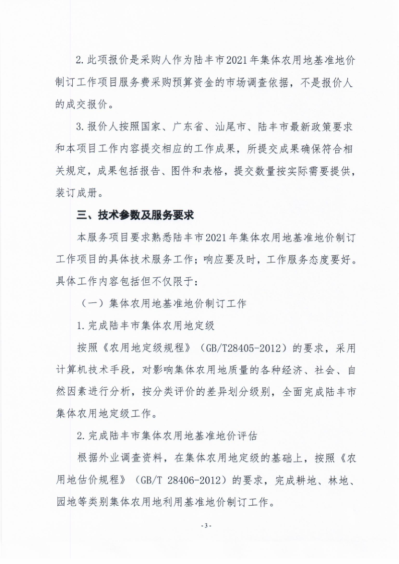 陸豐市2021年集體農(nóng)用地基準地價制訂項目服務(wù)費市場詢價調(diào)查