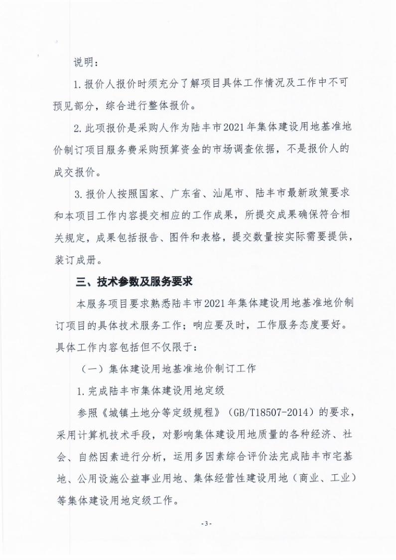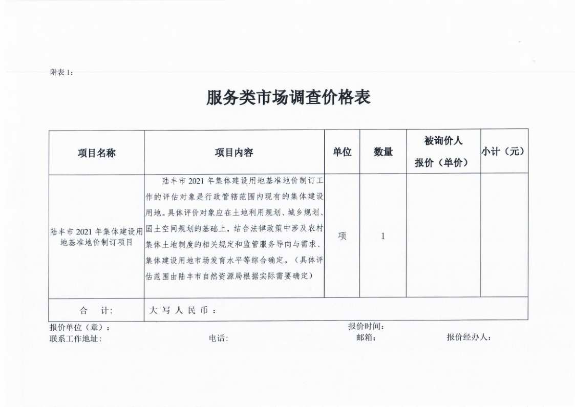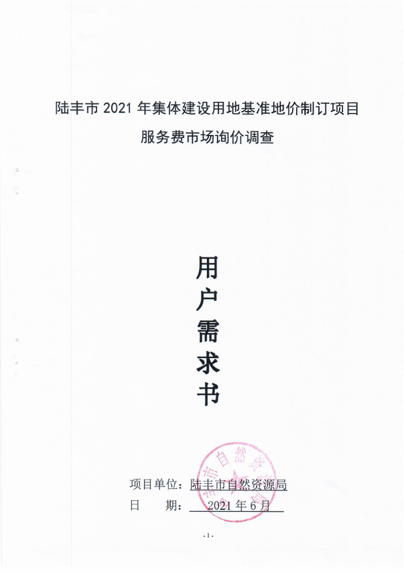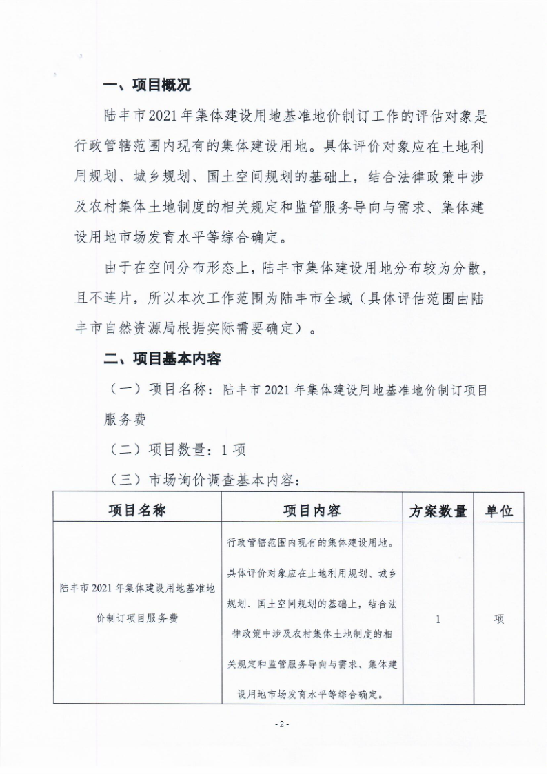 陸豐市2021年集體建設(shè)用地基準地價制訂項目服務(wù)費市場詢價調(diào)查