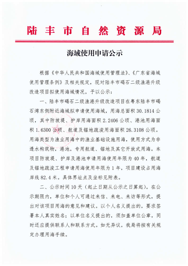 海域使用申請公示