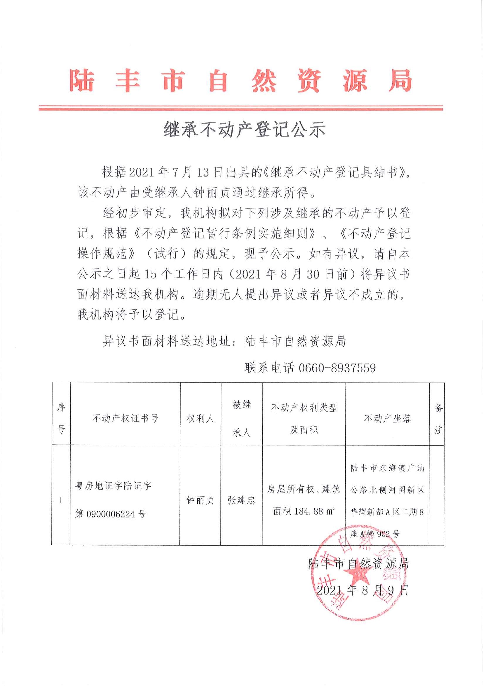 繼承不動產(chǎn)登記公示(鐘麗貞)