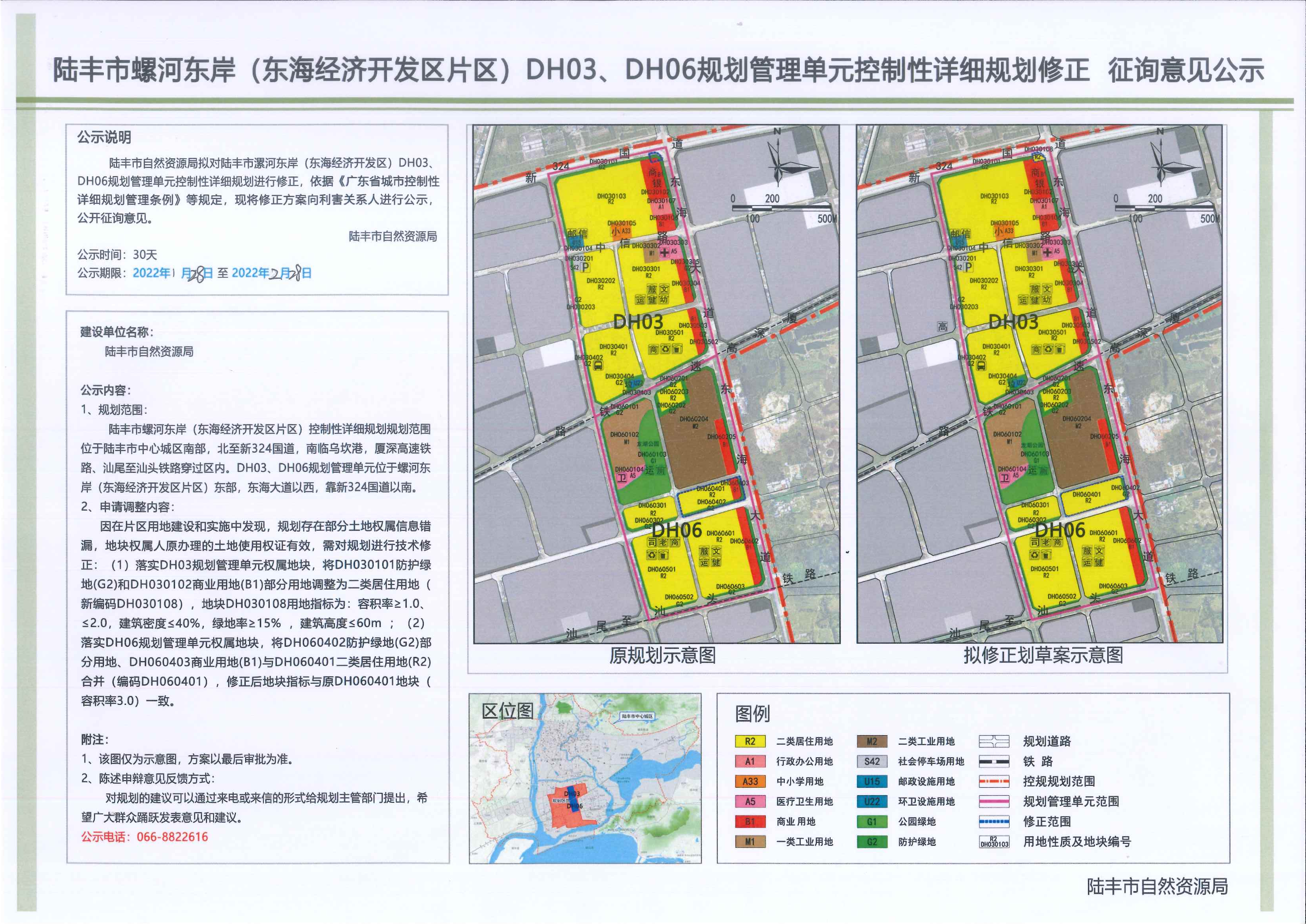 陸豐市螺河?xùn)|岸(東海經(jīng)濟(jì)開發(fā)區(qū)片區(qū))DH03、DH06規(guī)劃管理單元控制性詳細(xì)規(guī)劃修正 征詢意見公示