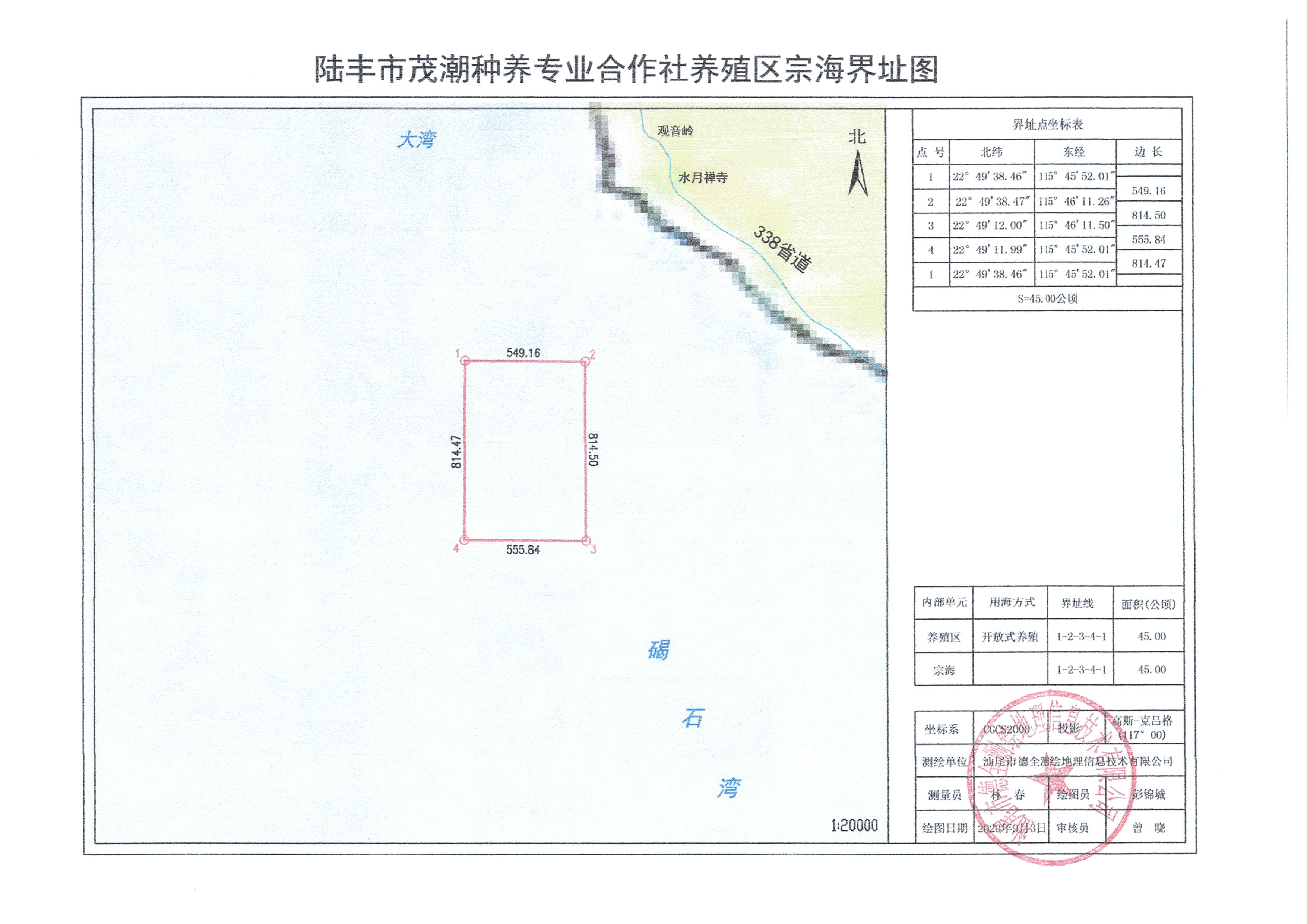 根據(jù)《中華人民共和國海域使用管理法》、《廣東省海域使用管理條例》及相關(guān)規(guī)定,現(xiàn)對陸豐市茂潮種養(yǎng)專業(yè)合作社擬使用海域情況,予以公示: