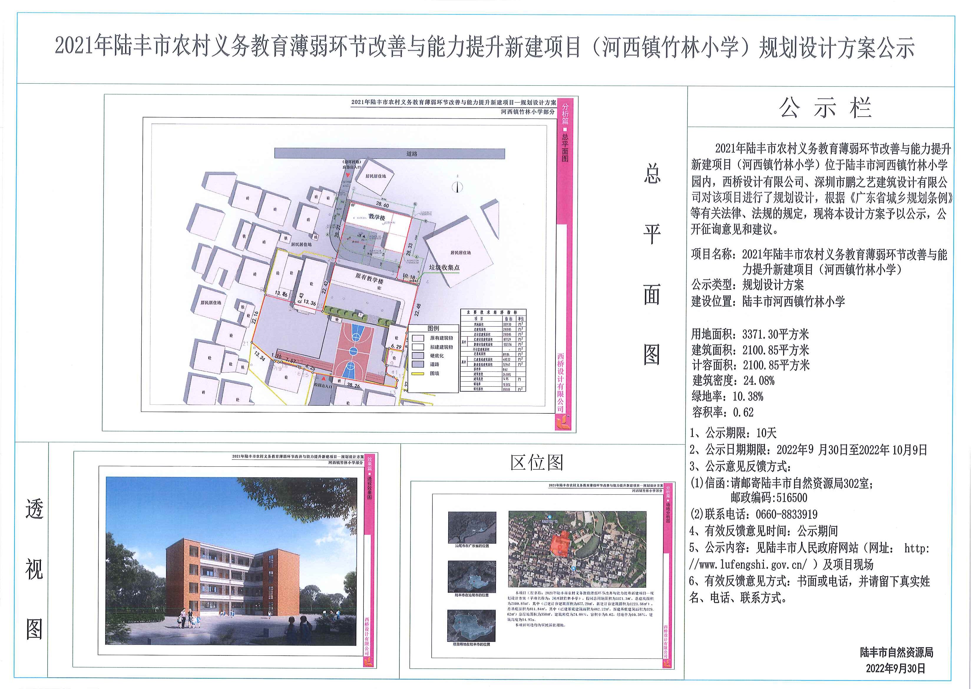 2021年陸豐市農(nóng)村義務(wù)教育薄弱環(huán)節(jié)改善與能力提升新建項目(河西鎮(zhèn)竹林小學(xué))規(guī)劃設(shè)計方案公示