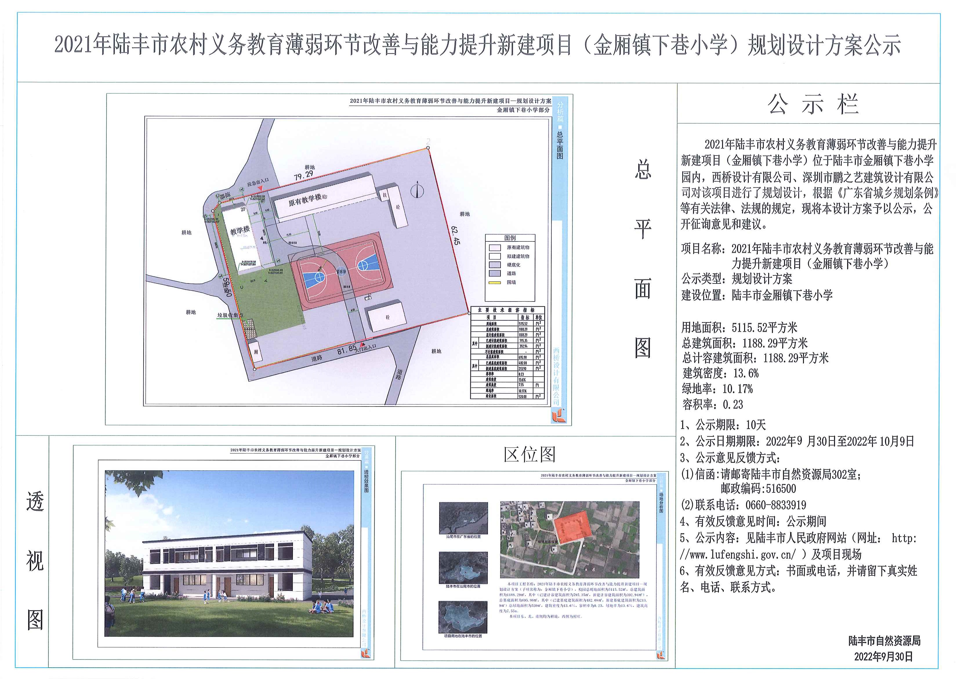 2021年陸豐市農(nóng)村義務(wù)教育薄弱環(huán)節(jié)改善與能力提升新建項(xiàng)目(金廂鎮(zhèn)下巷小學(xué))規(guī)劃設(shè)計(jì)方案公示