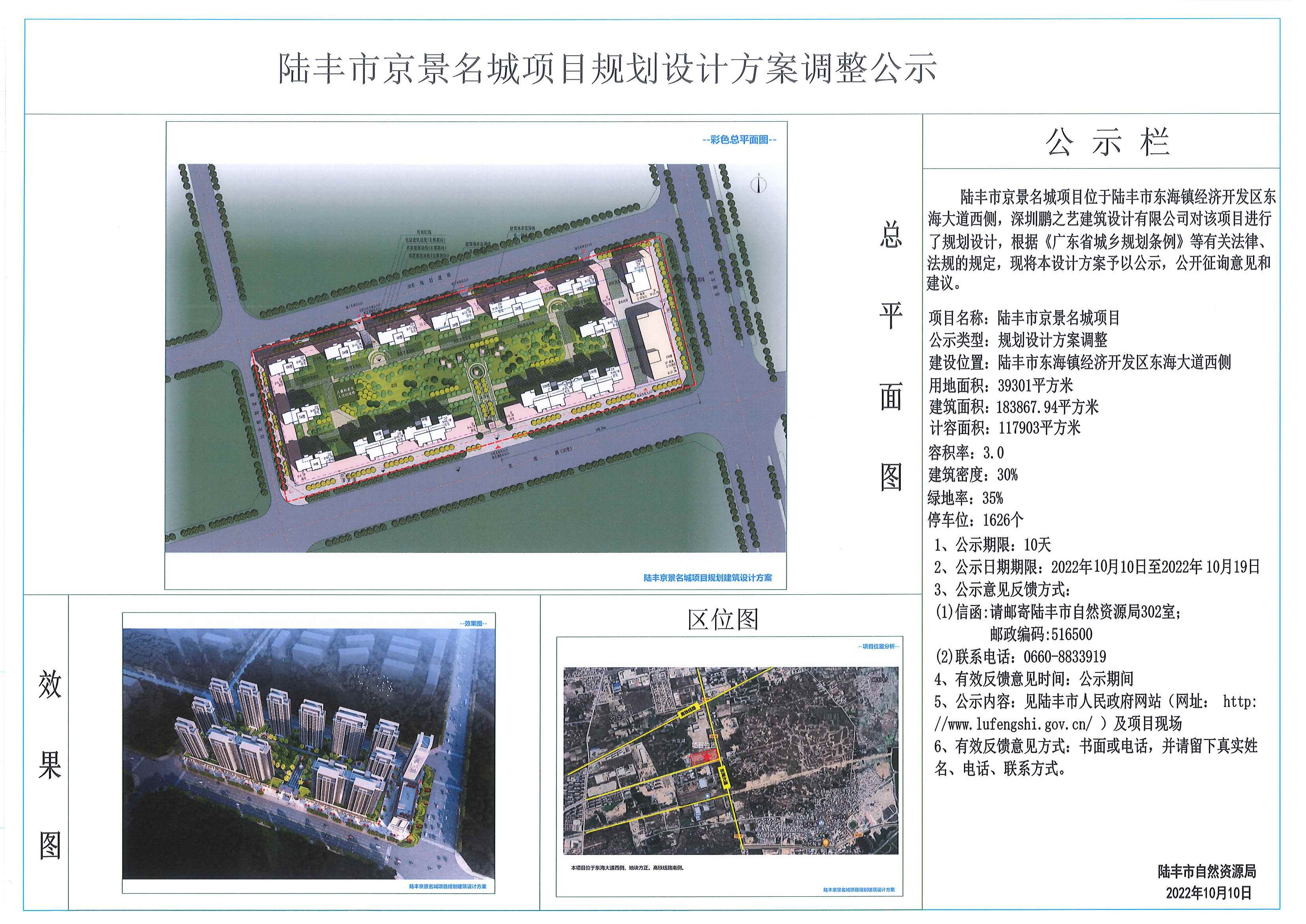 陸豐市京景名城項(xiàng)目規(guī)劃設(shè)計(jì)方案調(diào)整公示