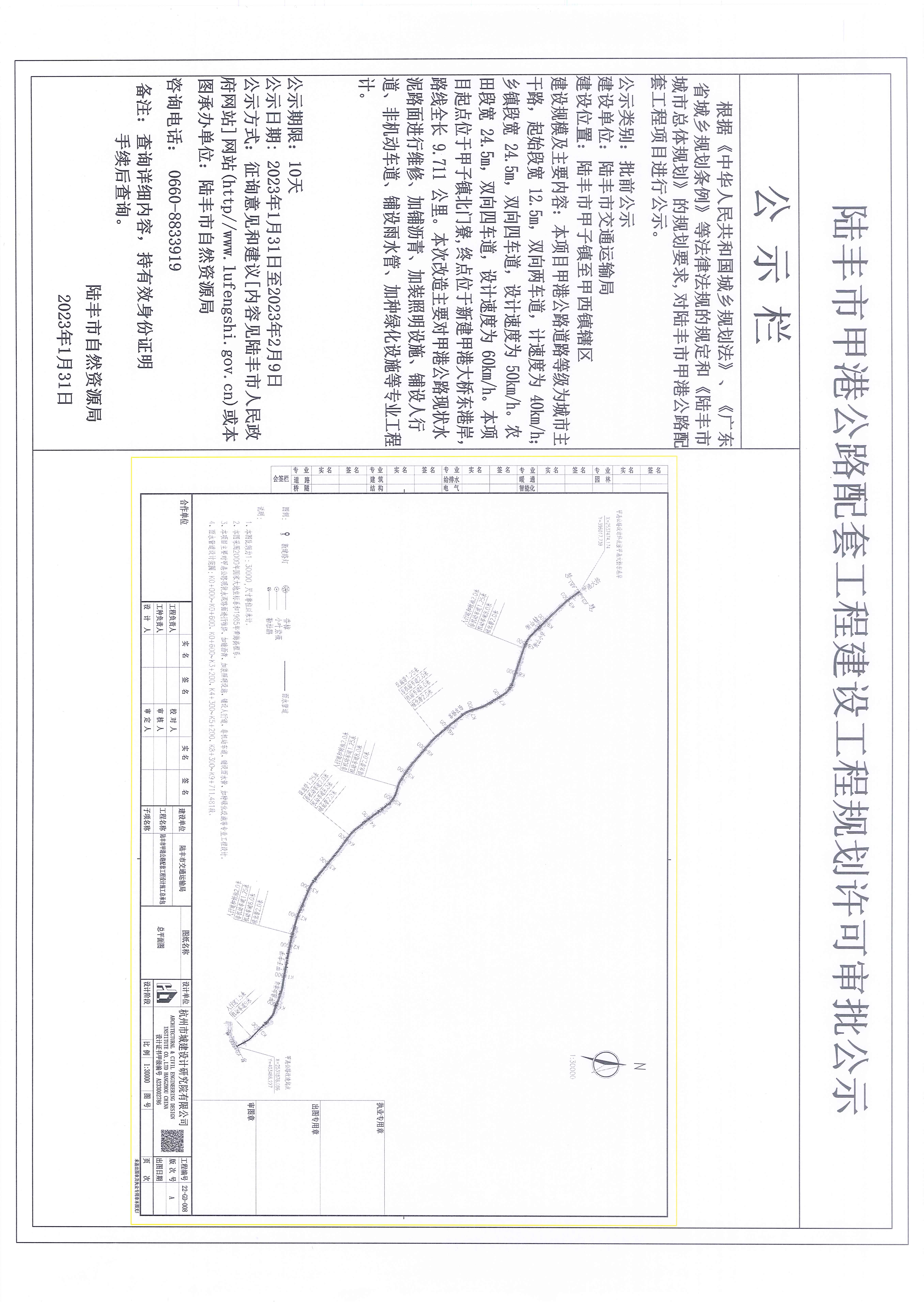 陸豐市甲港公路配套工程建設(shè)工程規(guī)劃許可審批公示