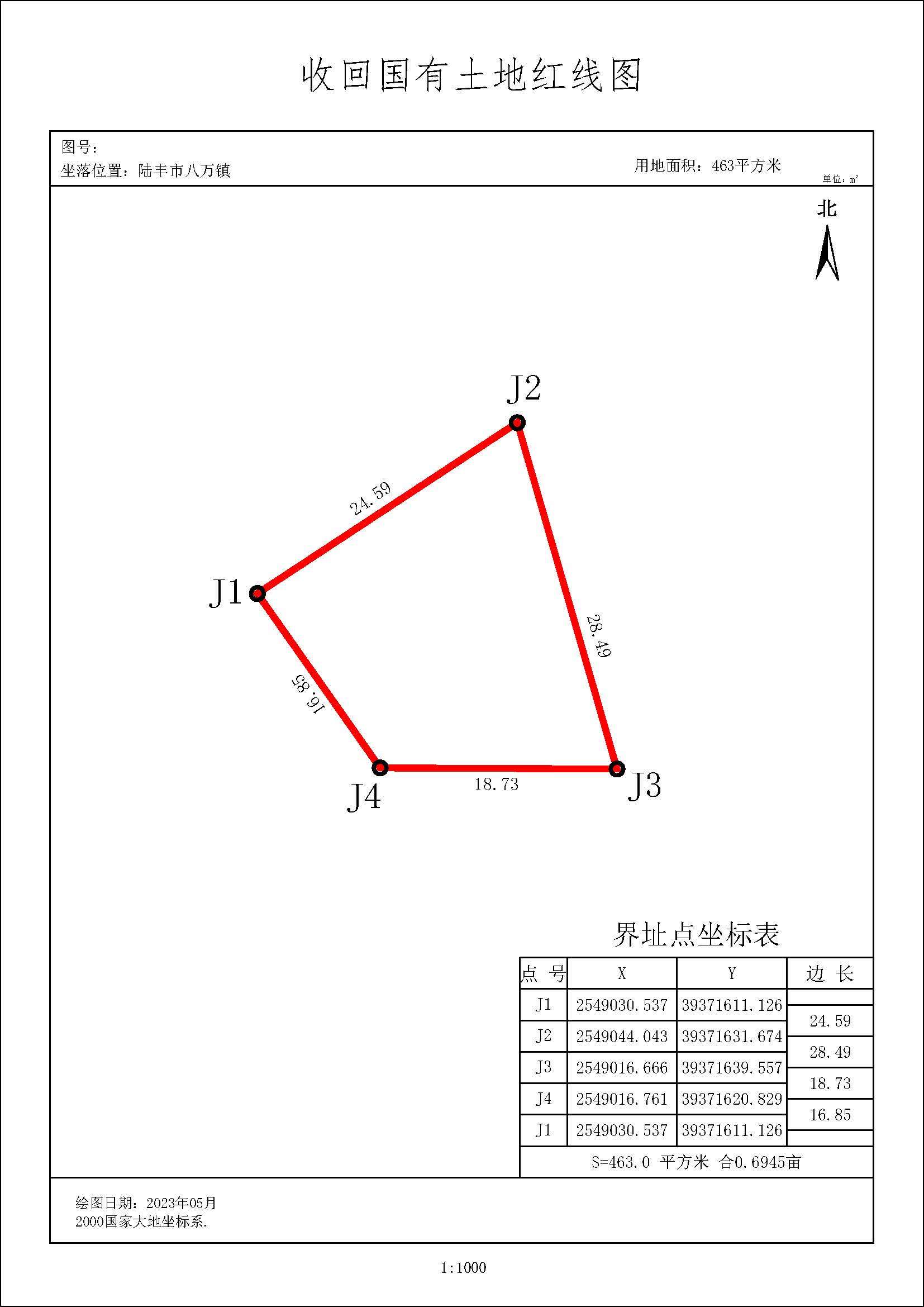 一、決定無(wú)償收回陸豐市八萬(wàn)鎮(zhèn)人民政府國(guó)有土地,位于八萬(wàn)鎮(zhèn)S238西側(cè),面積463平方米(折0.6945畝),具體面積及四至范圍以實(shí)地勘測(cè)定界圖為準(zhǔn),土地收回后納入政府土地儲(chǔ)備。