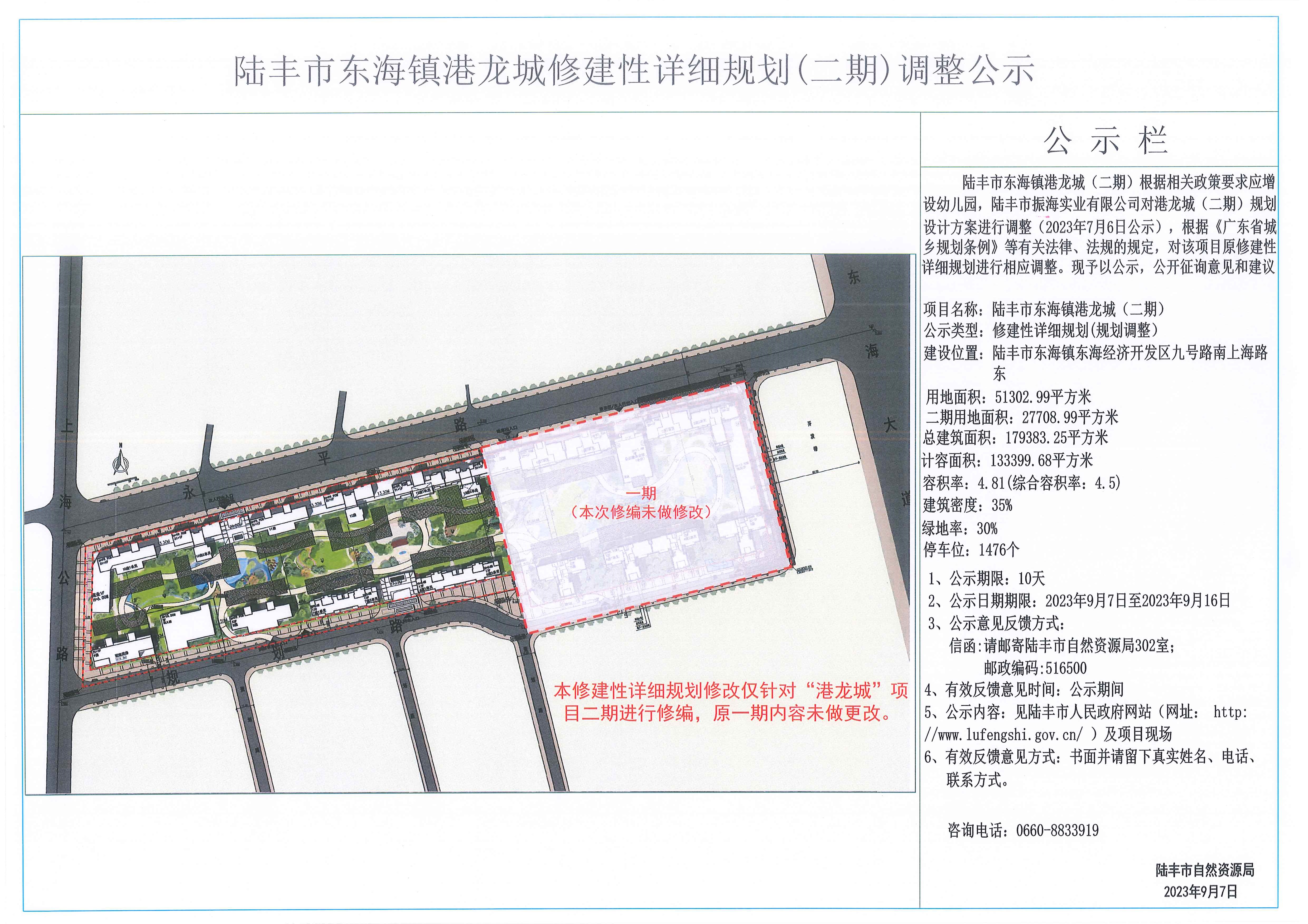 陸豐市東海鎮(zhèn)港龍城修建性詳細(xì)規(guī)劃(二期)調(diào)整公示