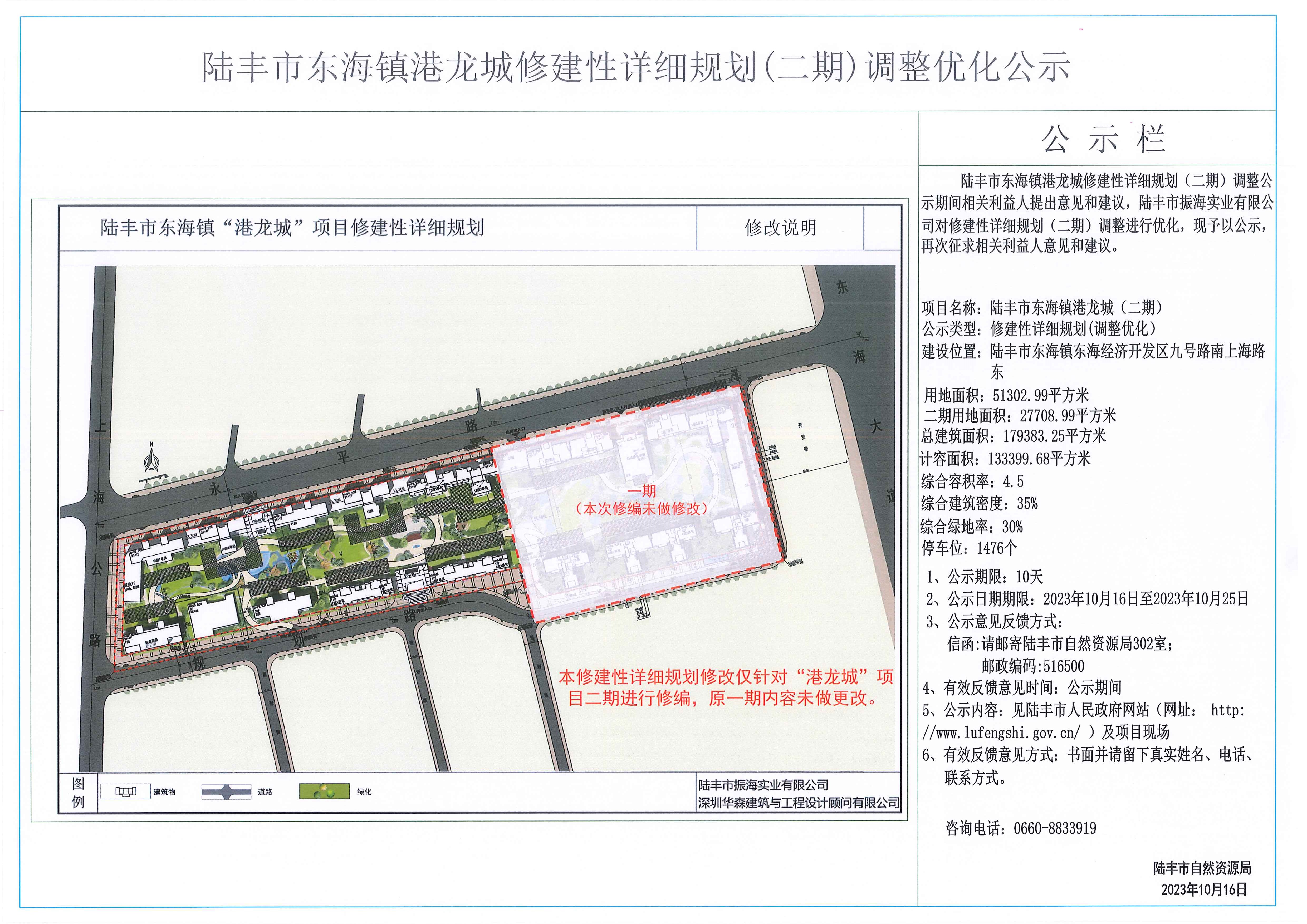 陸豐市東海鎮(zhèn)港龍城修建性詳細規(guī)劃(二期) 調(diào)整優(yōu)化公示
