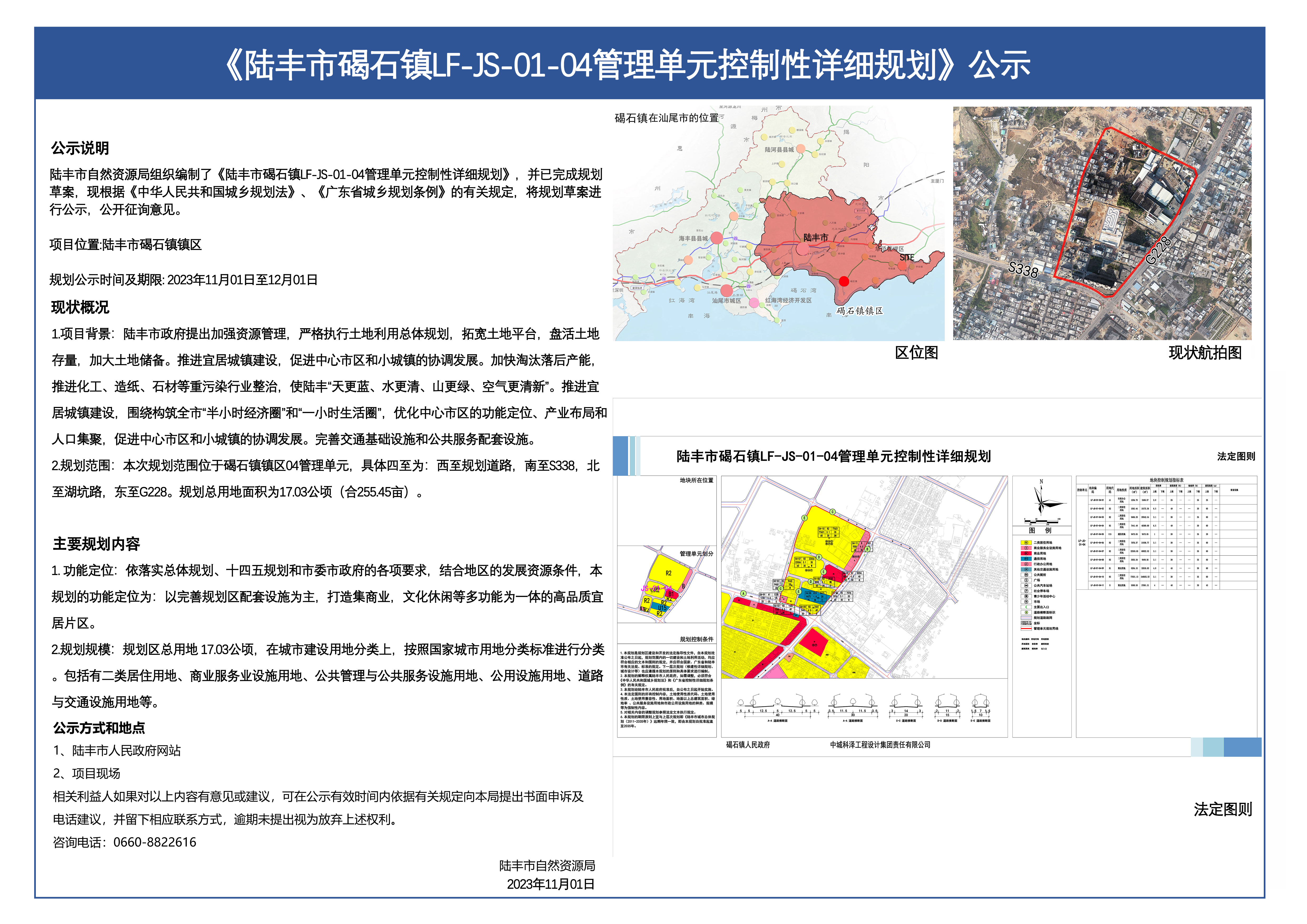 《陸豐市碣石鎮(zhèn)LF-JS-01-04管理單元控制性詳細規(guī)劃》公示